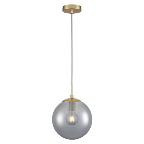 200mm Single Pendant in Aged Brass with Smoked glass (0194PER424359)
