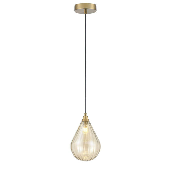 135mm Single Pendant in Aged Brass with Amber glass (0194PER424356)