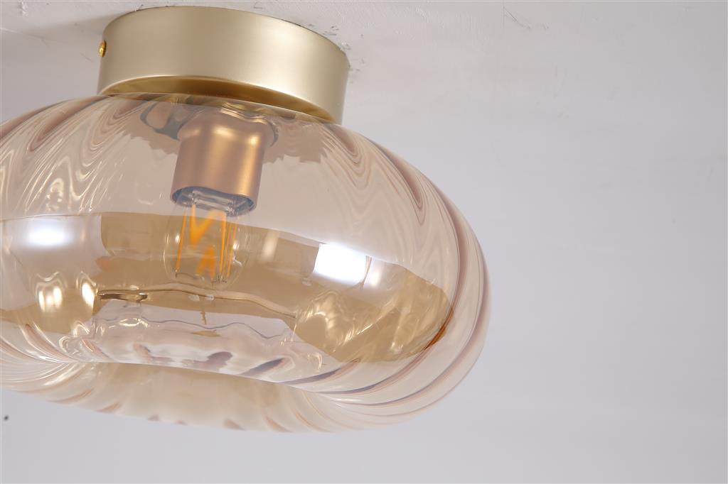 1 Light Flush - Gold Metal with Amber Glass (0483CEL3215628GO)