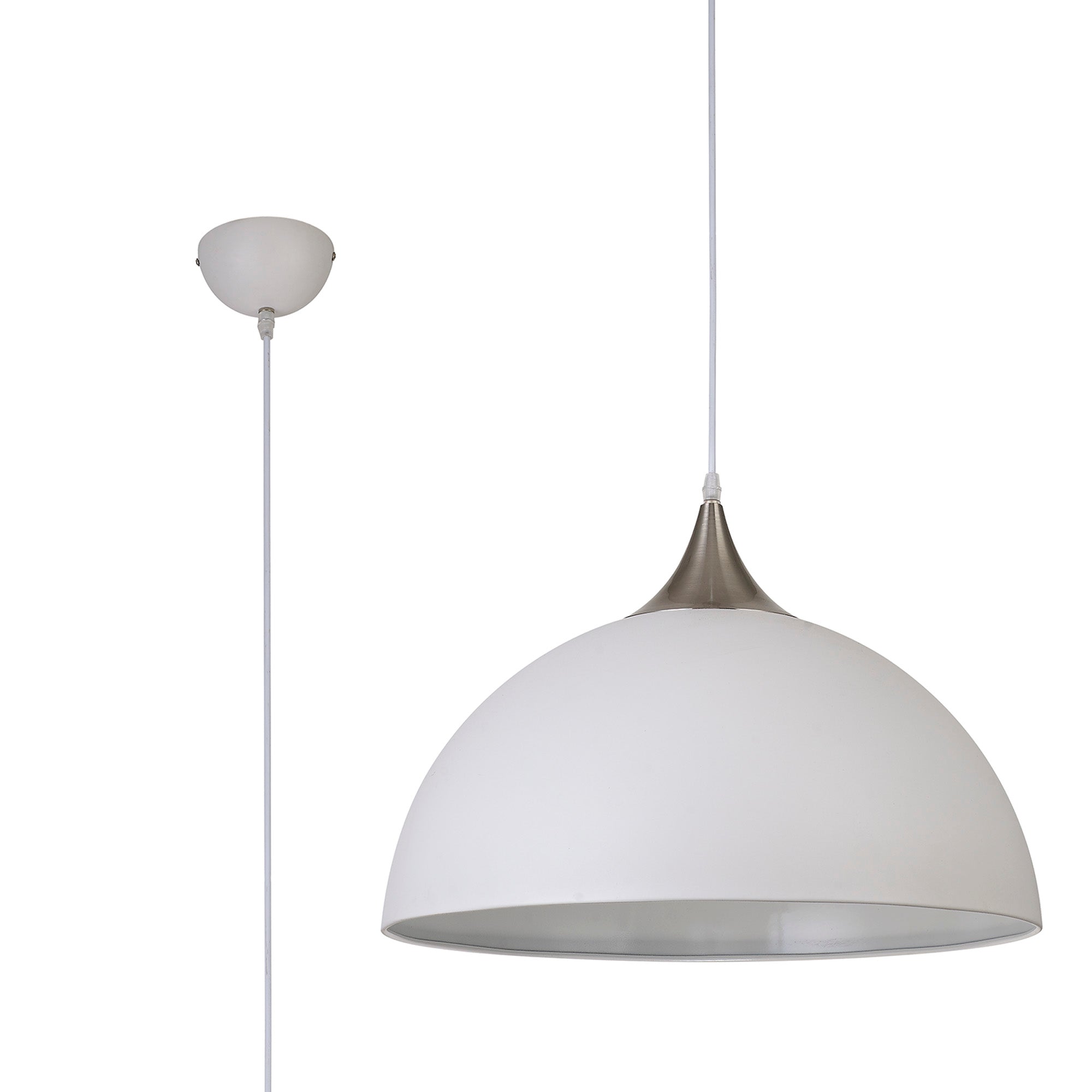 1 Light Large Pendant 50cm, Adjustable E27, Sand White/Satin Nickel (1230MAH97B)