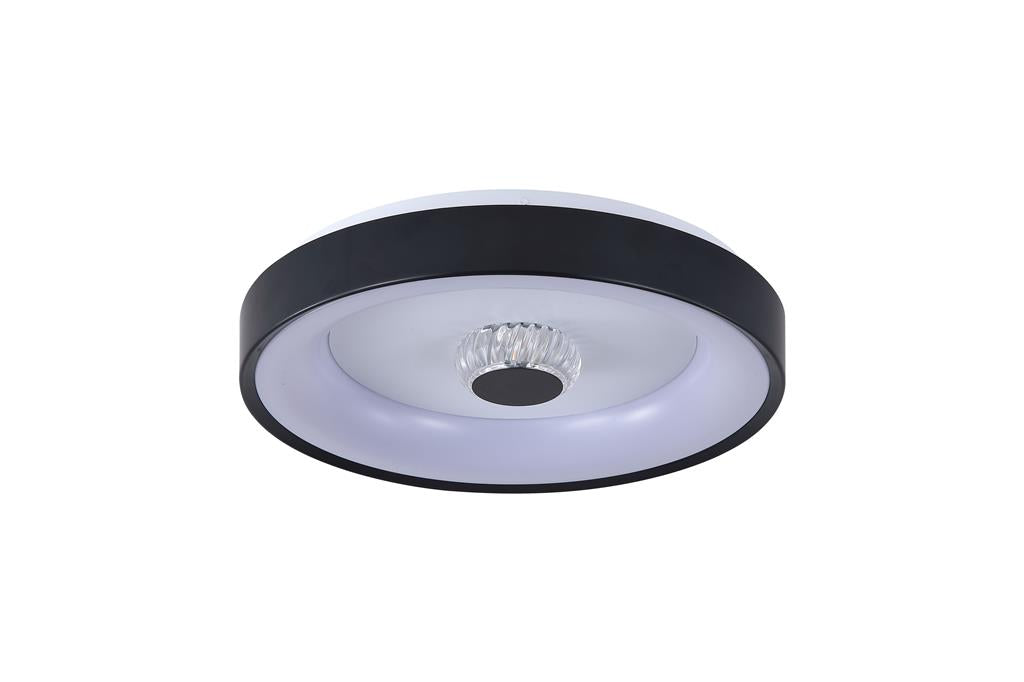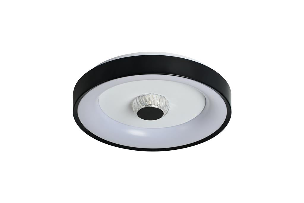 The circular frame features an innovative ring-light configuration, where a luminous white inner disc creates dramatic contrast against the deep black outer frame. The distinctive central void adds sculptural intrigue, giving this fixture an almost celestial quality that elevates it beyond ordinary lighting. The advanced LED system provides brilliant, energy-efficient illumination while the clean geometric form makes a powerful design statement. This flush-mount fixture works beautifully in modern living spaces, dining areas, or bedrooms where you want to combine practical lighting with architectural drama. Its low profile and bold aesthetic create instant sophistication without overwhelming the space.