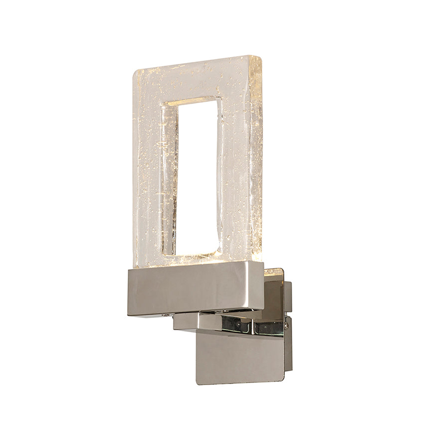 1 Light LED Wall Lamp, Polished Chrome, Rectangular Cut-out Glass (1230FRO17A)
