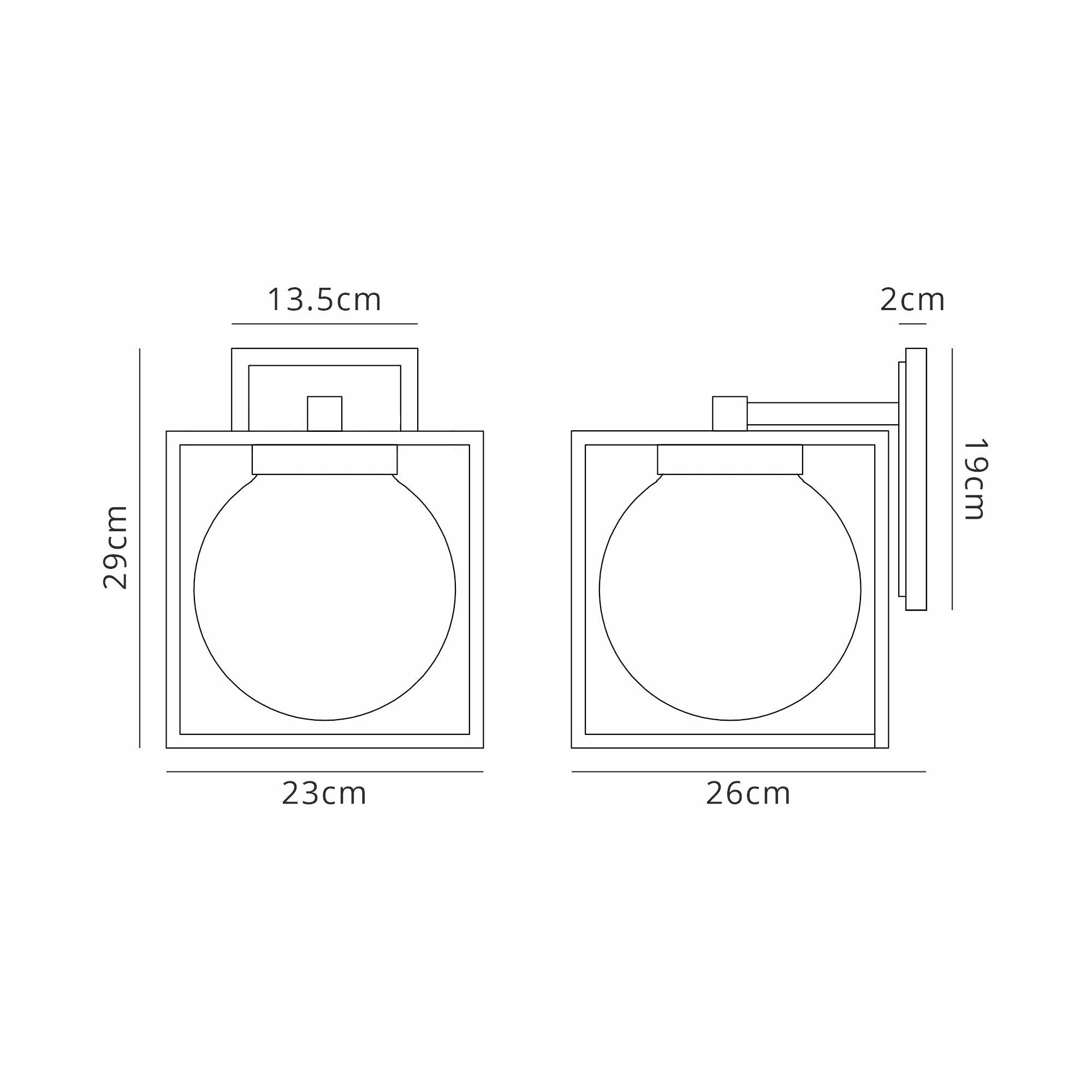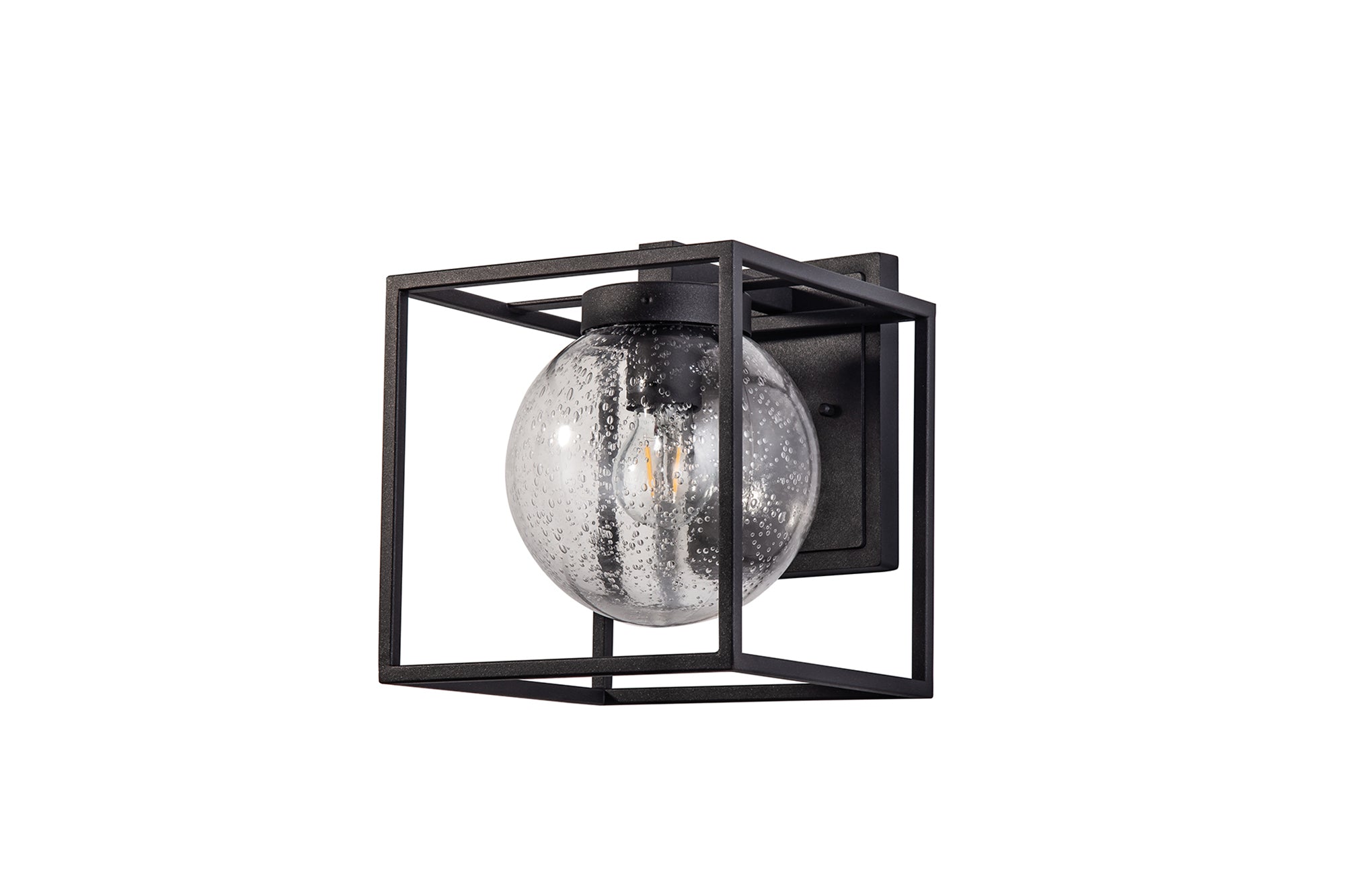 The Origin outdoor wall lamp uses a uniform cube frame with open faces to offer a clear view of the unique glass globe. The clear seeded glass acts a protective seal around the E27 lamp holder giving the fixture an IP54 rating whilst also providing a stylish feature appropriate for outdoor lighting. The dark anthracite colour finish offers extra durability against all types of weather.