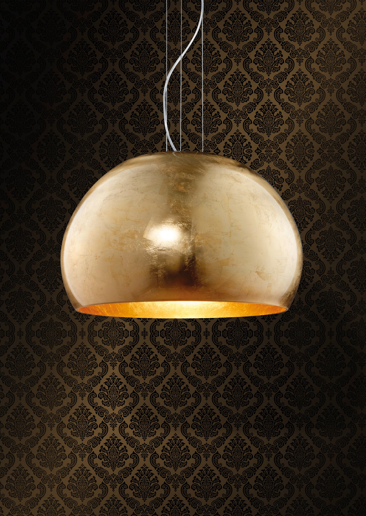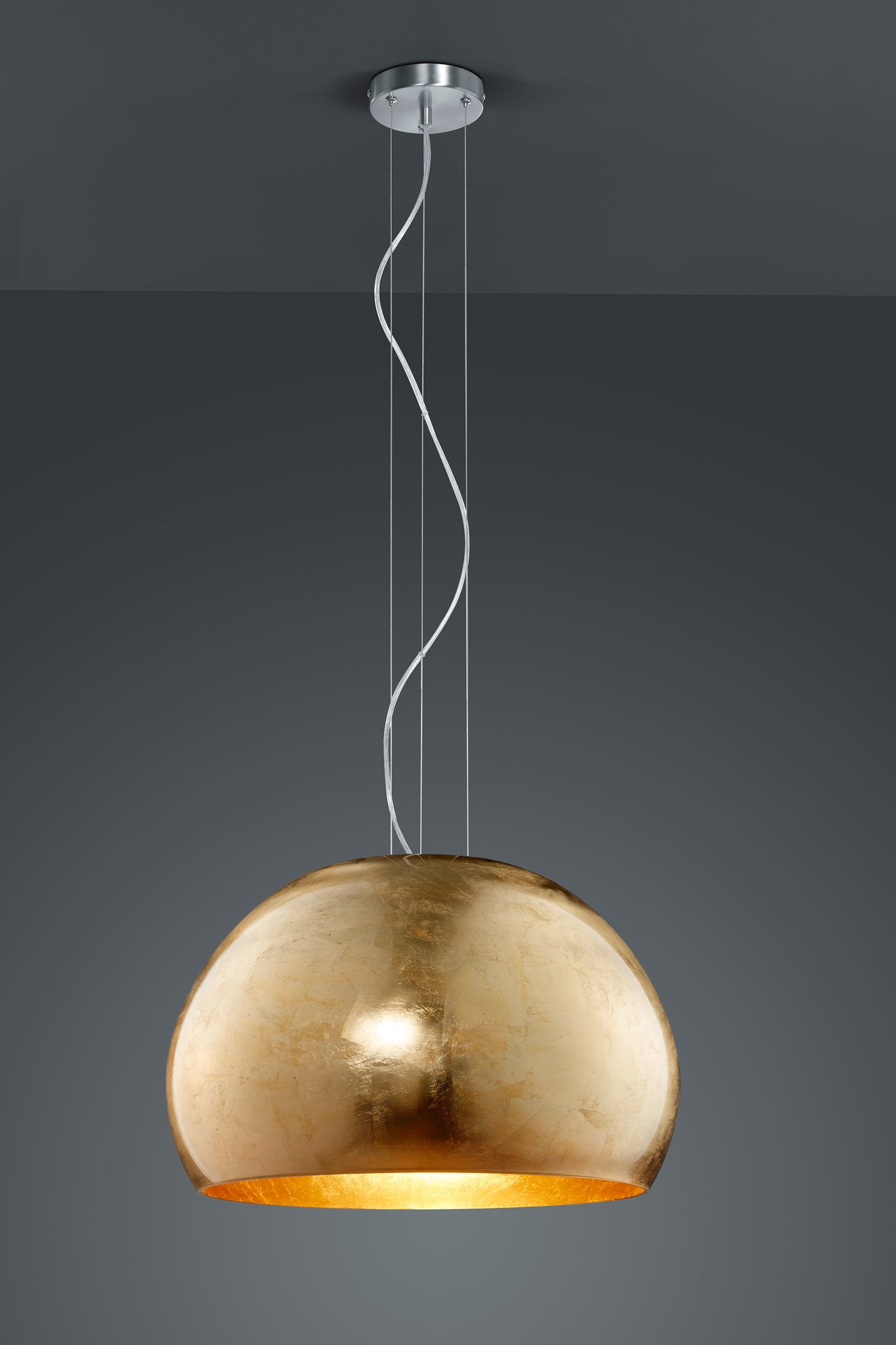 A high-quality and elegant pendant light that brings a classic look into your home. It is particularly effective in the dining area, placed above the dining table, as the light is directed downwards due to its round shape and illuminates the desired area. It has a suspension length of 155 cm and a diameter of 33 cm. The gold-coloured pendant light creates a warm ambience in your living room. For energy-saving lighting, it is recommended to use an LED illuminant. These are an optimal alternative to conventional halogen lamps and stand for a high quality of light and energy savings of up to 80%. In addition, LED lamps help you benefit from a long service life, low heat generation and at the same time protect the environment.
