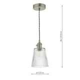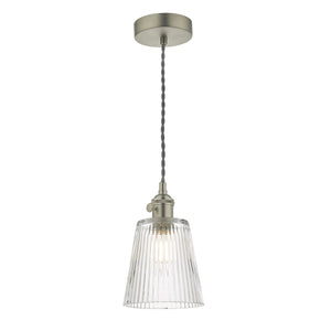 1 Light Pendant Antique Chrome with Ribbed Glass Shade (0183HAD016105)