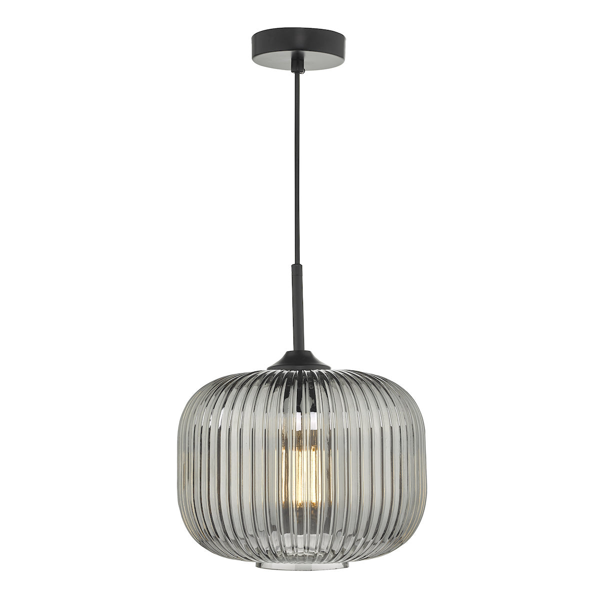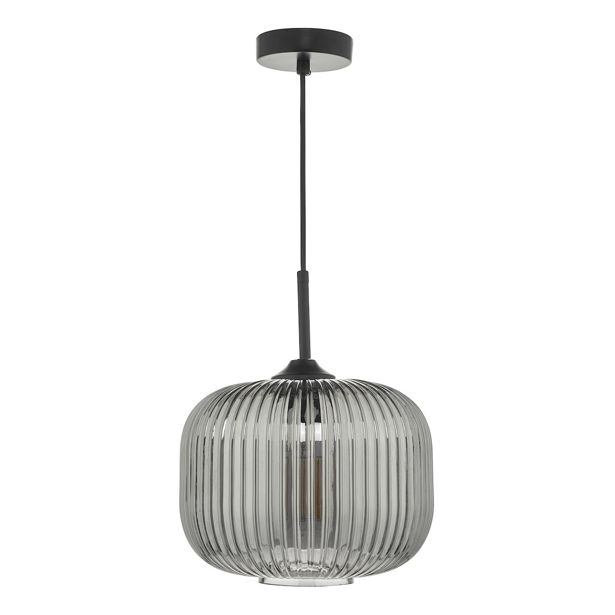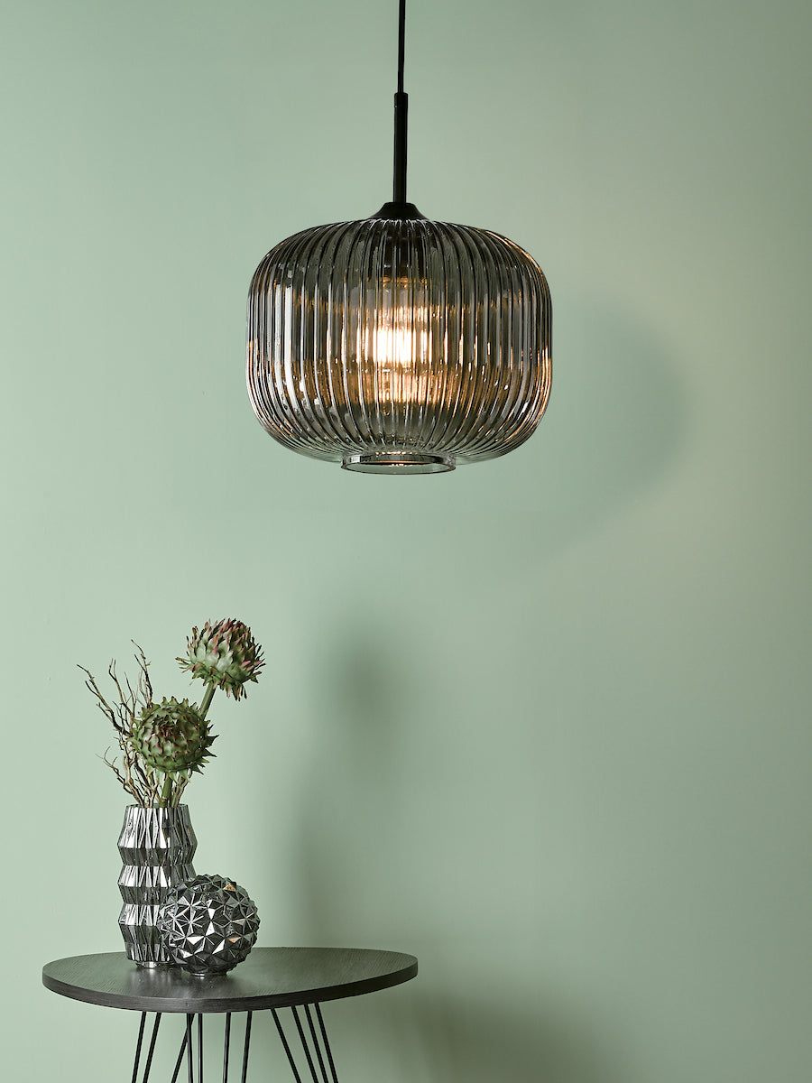 Add a splash of contemporary style to your space with this Pendant. This eye-catching pendant features a subtle smoked ribbed glass shade that casts a soft, ambient glow. The matt black finish adds to the modern aesthetic, making it a versatile addition to any room. Whether illuminating your dining area or brightening up a cosy reading nook, this Pendant brings a touch of sophistication to your home.