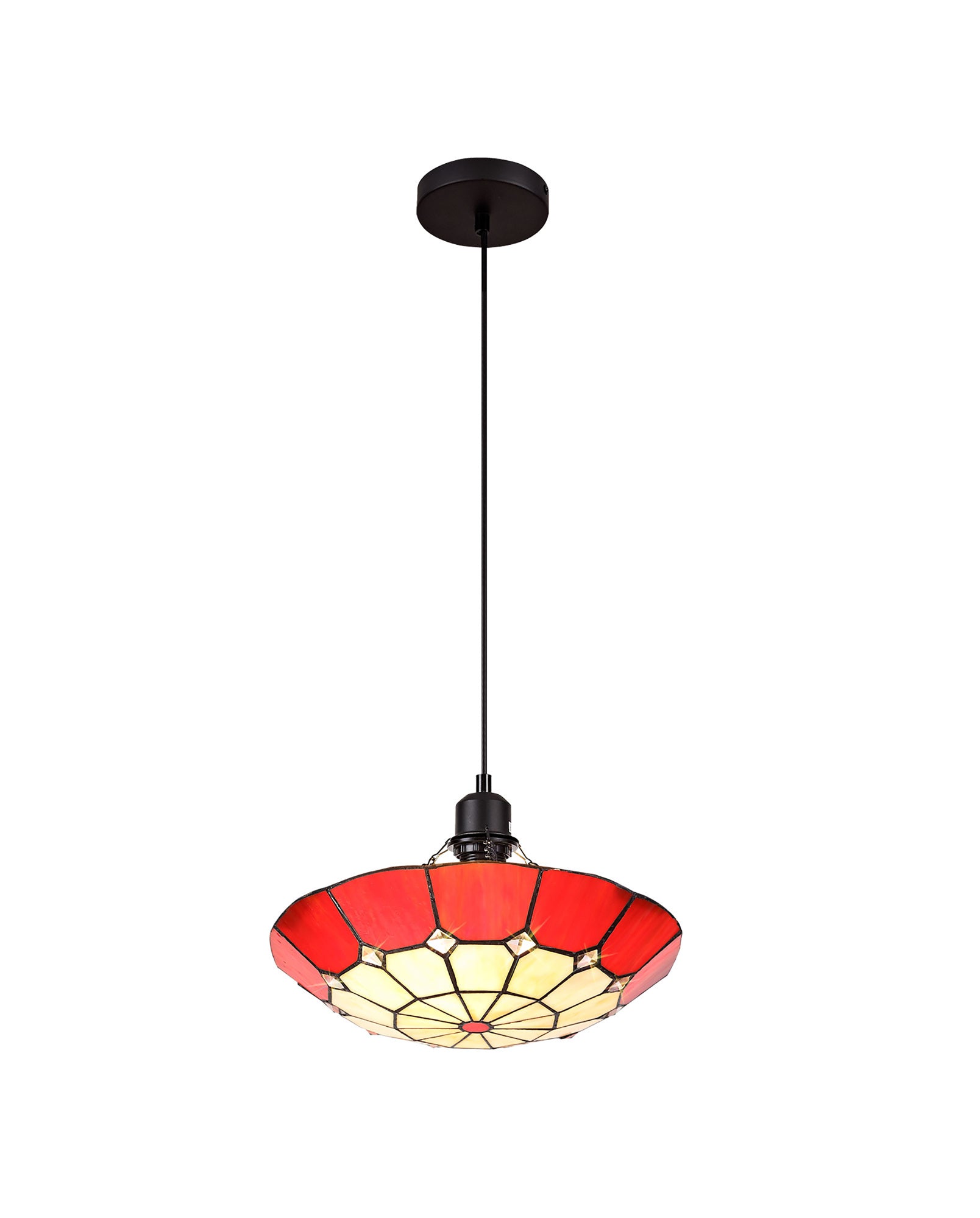 1 Light Pendant E27 with 35cm Tiffany Shade, Cream/Red Aged Antique Brass Trim (1230MAJK5)