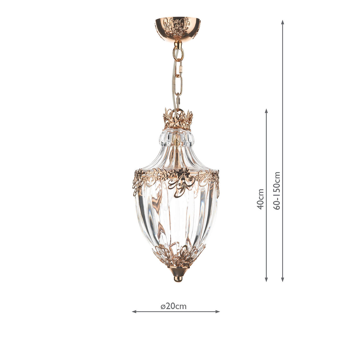 This fitting has lovely decorative French gold effect metal work on a fluted glass pendant.