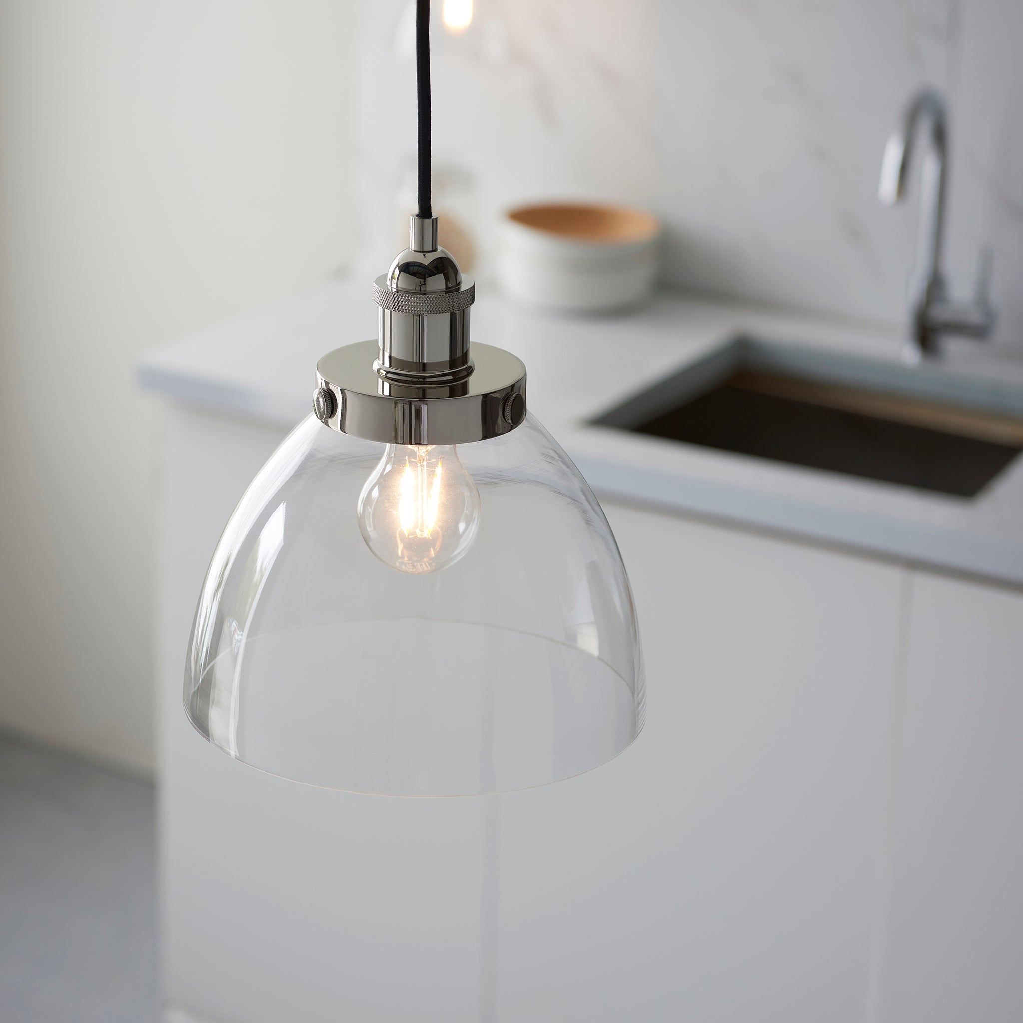Authentic ‘resto' style pendant in timeless bright nickel with clear glass shade. Knurled edges form the signature details to this range, styled to stand the test of time.