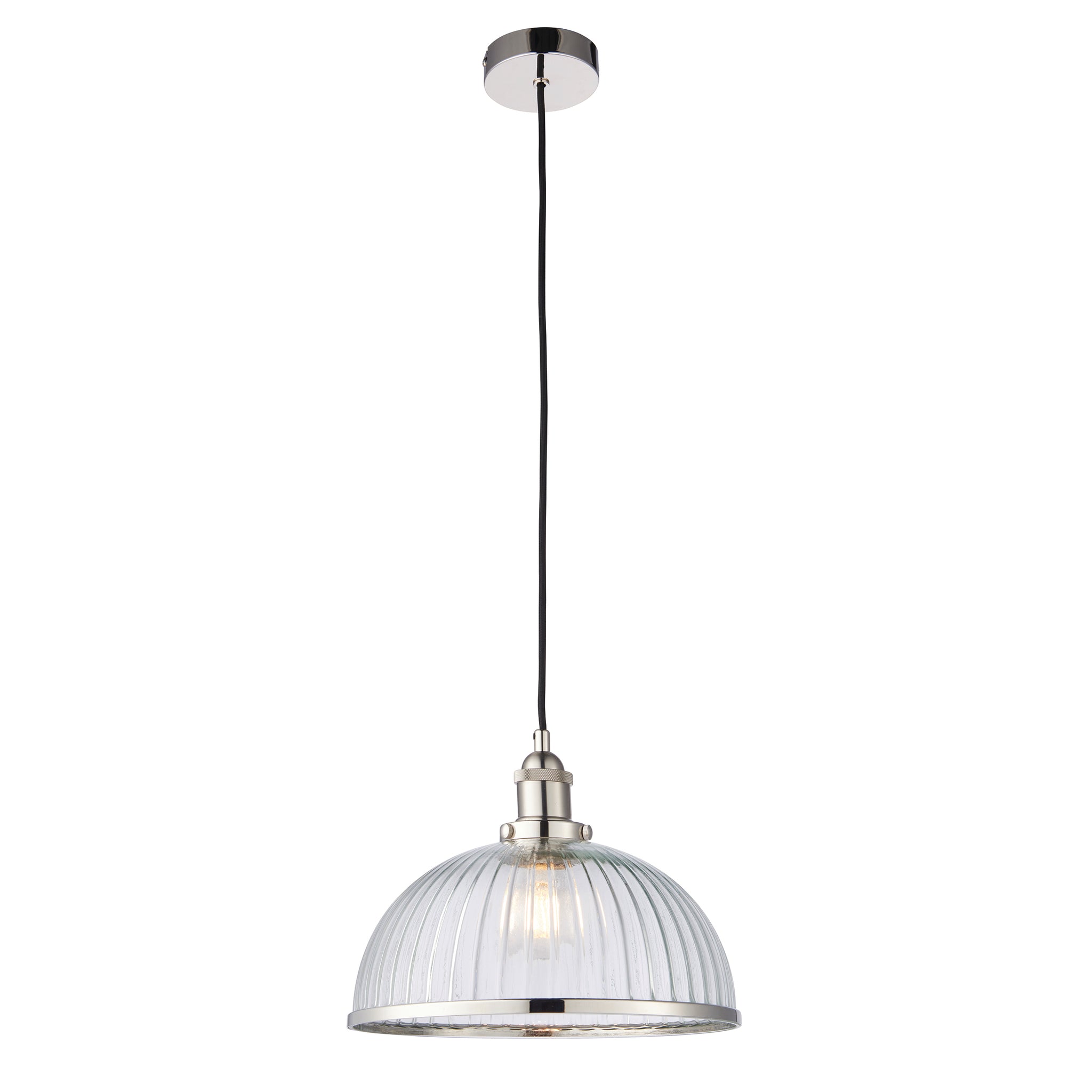 - Bright nickel plate & clear ribbed glass