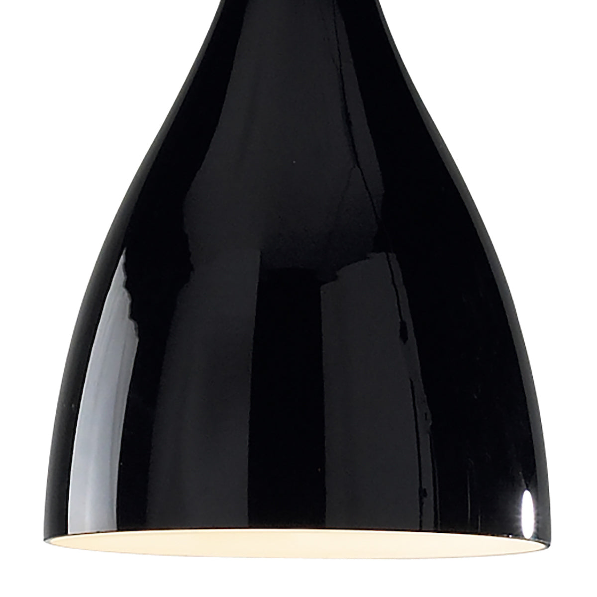 This 1 Light Pendant features a polished chrome ceiling plate and a black glass shade.