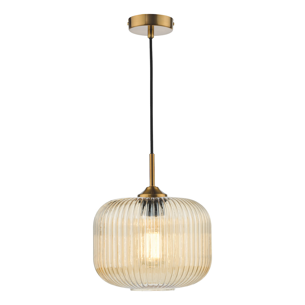 1 Light Pendant Natural Brass and Amber Glass (0183DEM0106)