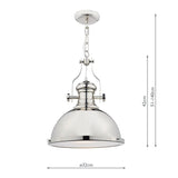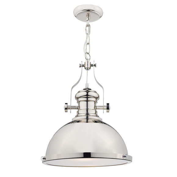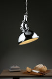 This hanging ceiling pendant light has its vintage industrial style brought bang up to date with a highly polished chrome finish. Comes with a glass diffuser to conceal the bulb, giving a beautiful diffused light.