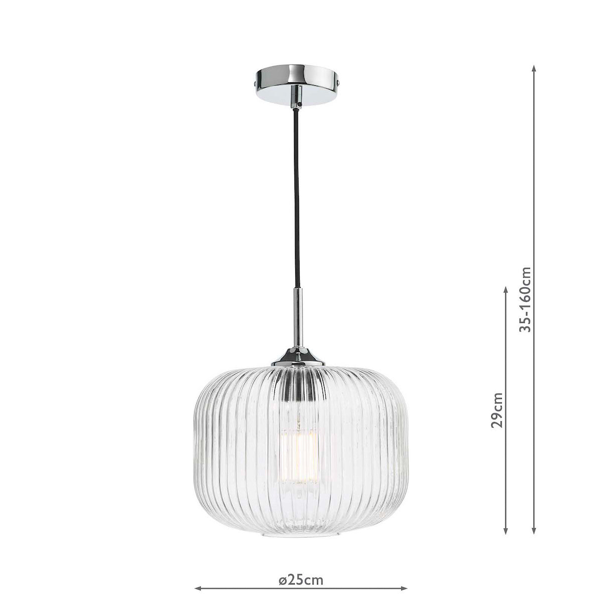 This Pendant beautifully combines functionality and style, offering a lovely glow that enhances any space. Featuring ribbed glass with polished chrome metalwork and a chic black braided cable, this pendant light exudes modern elegance. Whether you’re setting the mood for a dinner party or seeking accent lighting in your hallway or bedroom, this pendant delivers subtly sophisticated illumination that effortlessly complements your decor.