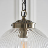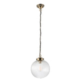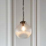 1 Light Pendant with Ribbed Round Glass in Antique Brass 250mm (0711BRY71123)