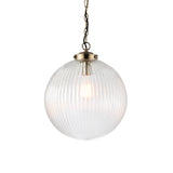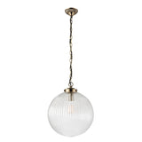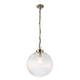 1 Light Pendant with Ribbed Round Glass in Antique Brass 350mm (0711BRY71124)