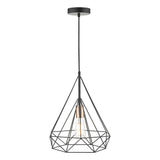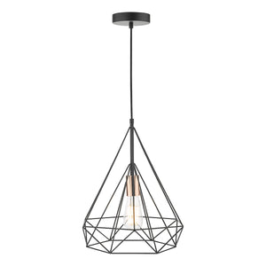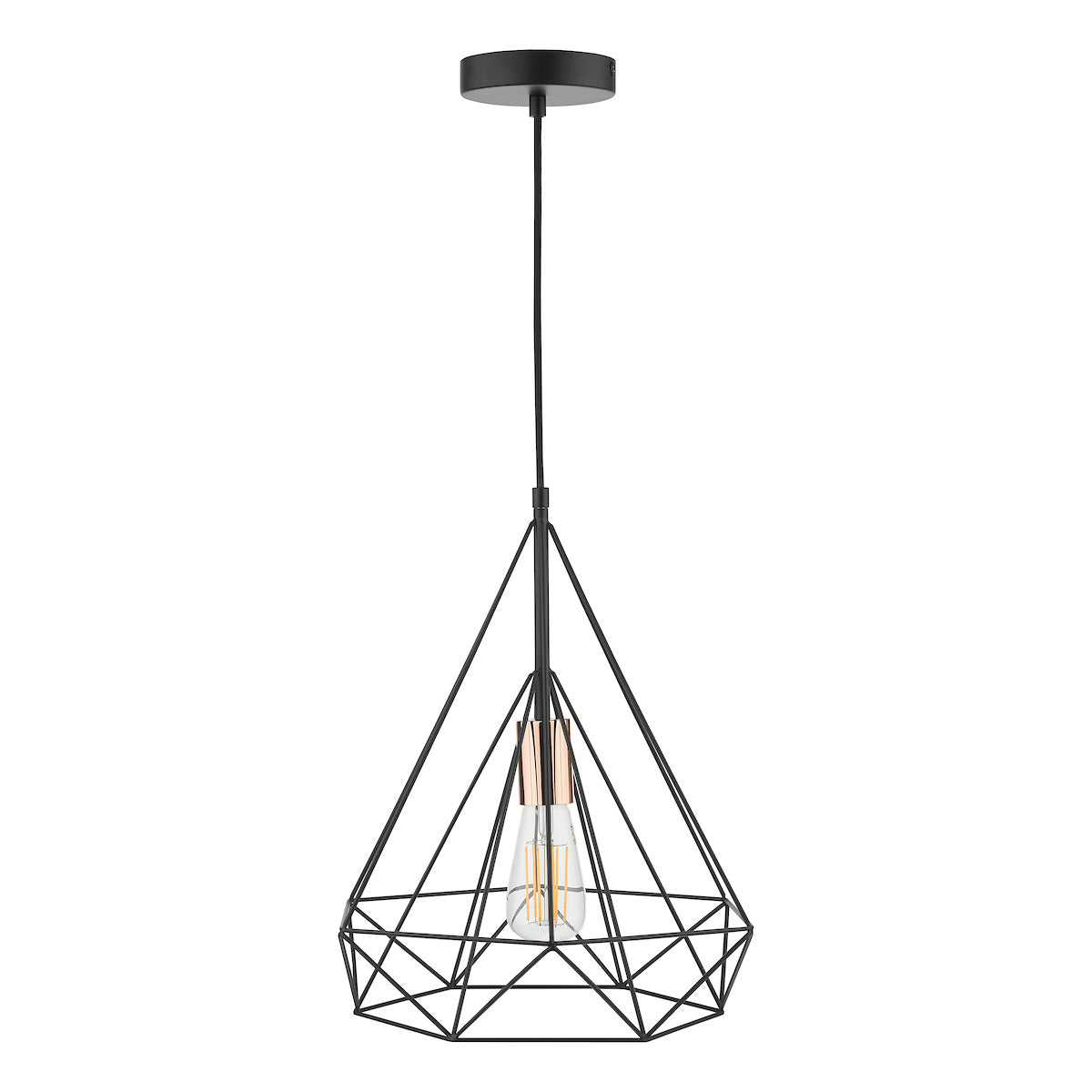 Perfect for modern homes, the single pendant features a matt black geometric open cage frame framing the copper lamp holders and bulbs we recommend pairing with a vintage filament lamp as pictured (sold separately).