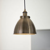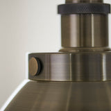 An authentic 'resto' style industrial pendant, finished in antique brass plate. Suspended from height adjustable black fabric flex, pair with filament LED lamps for that perfect industrial style. The perfect addition for today's stylish homes to create that on trend bar, bistro look.