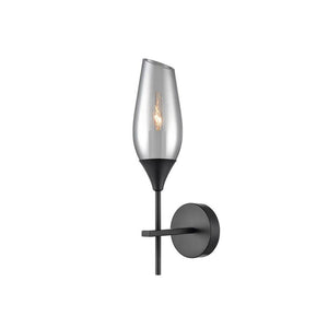 Angle cut Glass wall light with a matt black finish in a choice of smoked, pale amber or copper finish.