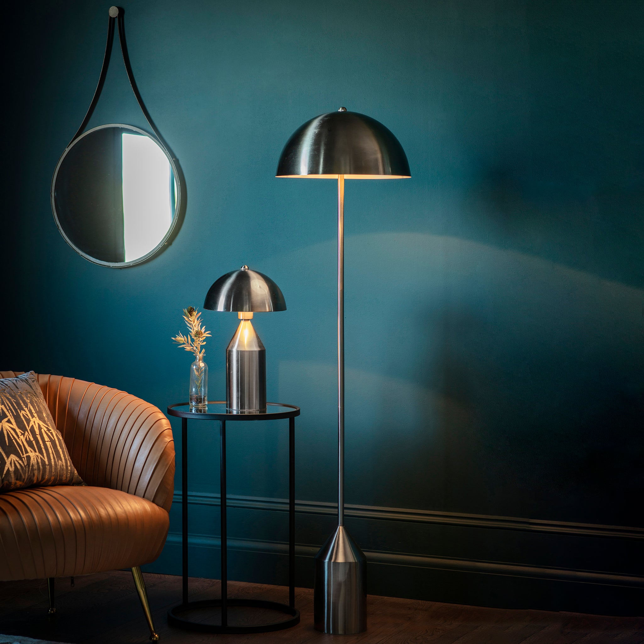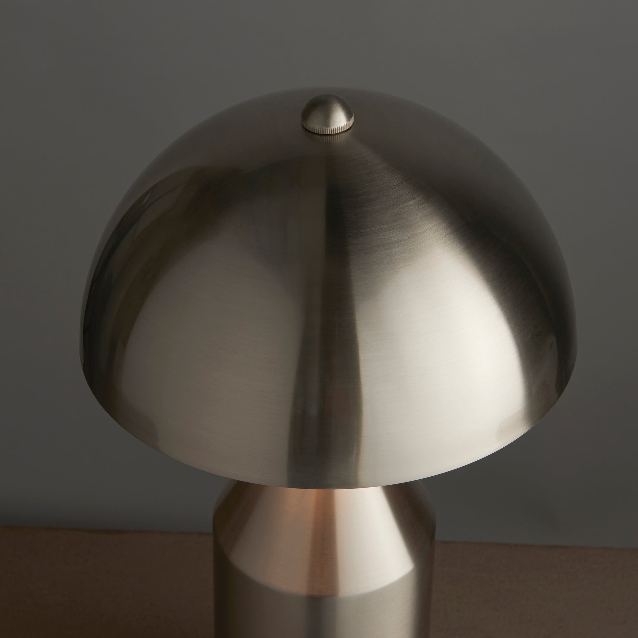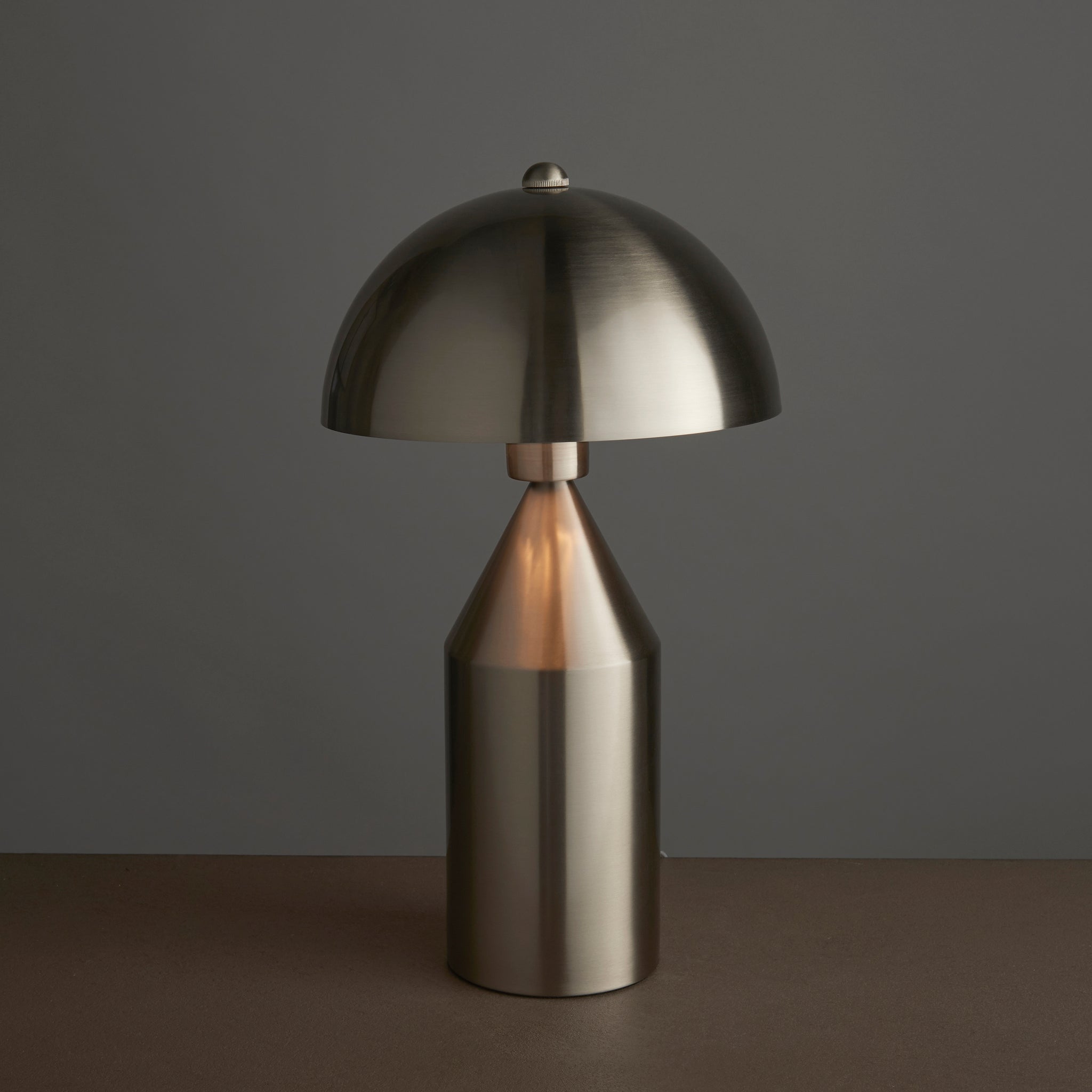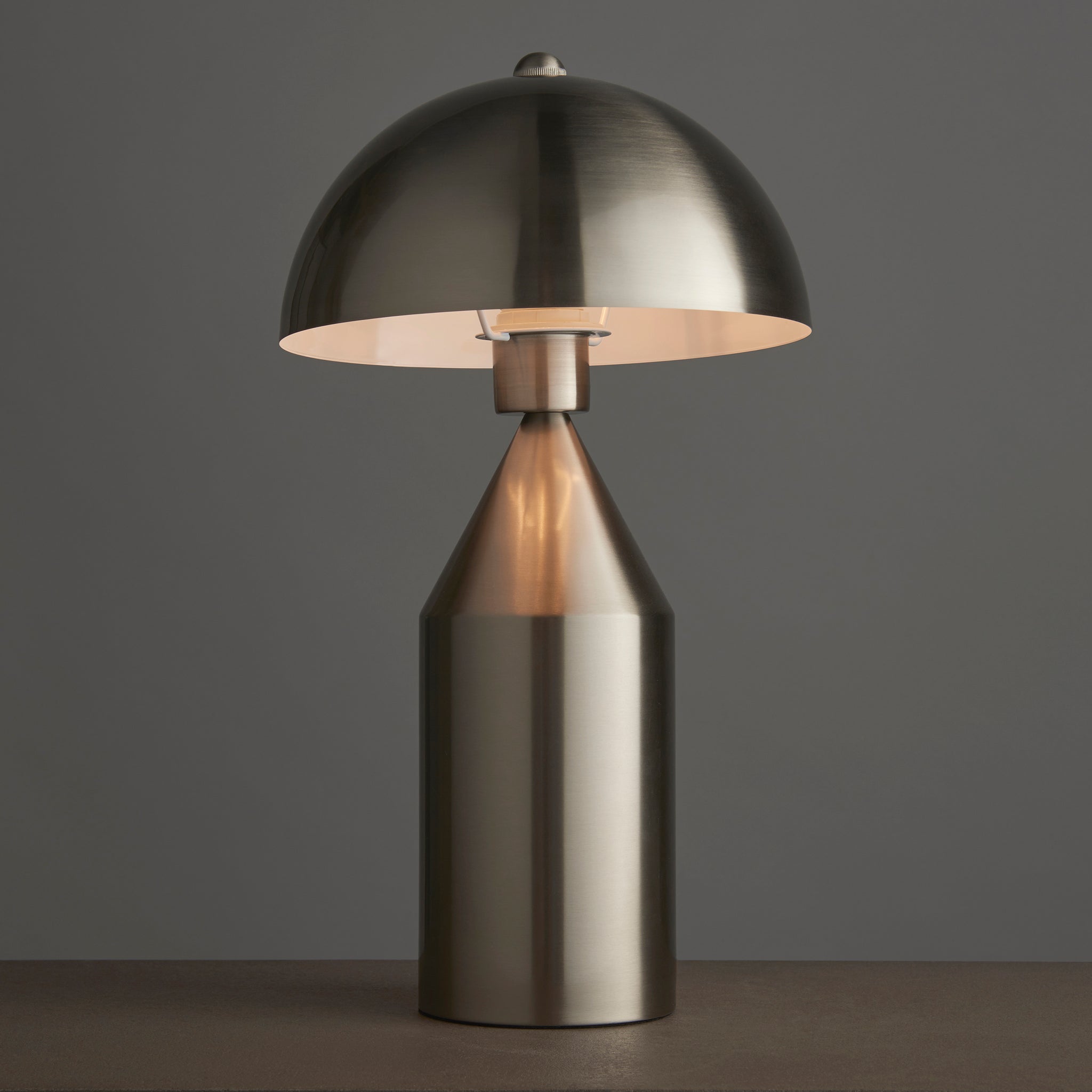 An eye-catching contemporary table light with smooth clean lines in a stunning brushed nickel plate finish. Complete with an inline switch this lamp will cast a lovely light in both modern and traditional interiors.