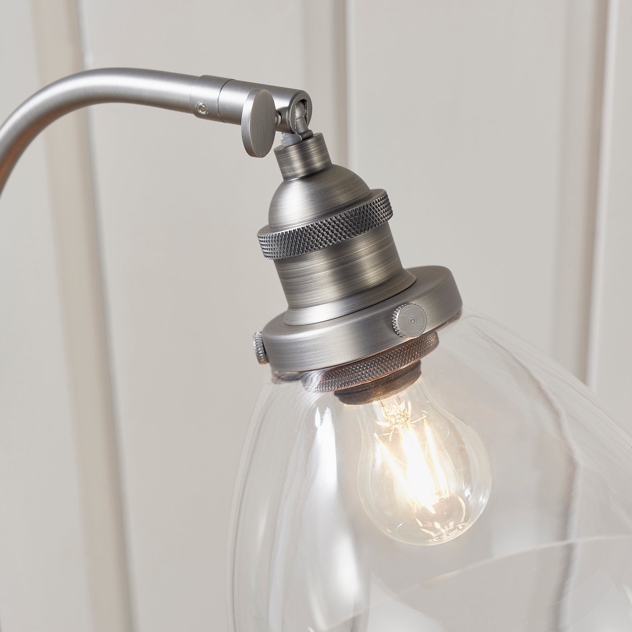 An authentic 'resto' style adjustable table light, finished in antique brass plating with authentic knurled lamp holder details and clear glass shades . Featuring an adjustable knuckle and accessible on/off switch, pair this table light with filament LED lamps for that perfect industrial style. The perfect addition for today's stylish homes to create that on trend bar, bistro look.