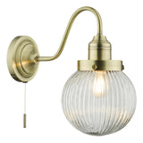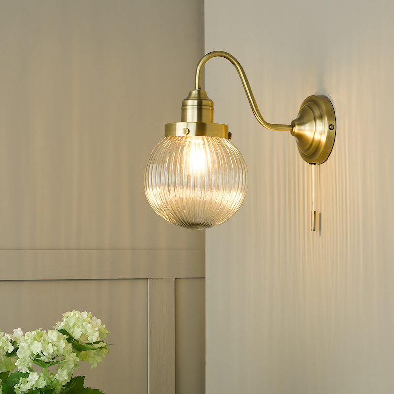 This is an elegant ribbed glass wall light which would be equally at home in a French bistro or a country kitchen. Finished in antique brass with a matching pull cord switch.