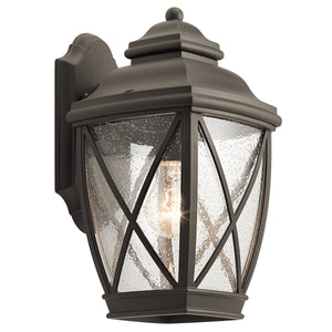With a classic lantern look, this collection picks up style cues from lighting found in historic town squares. The versatile outdoor design features a criss-cross pattern and traditional detailing that's always in style. The glass has a small bubble effect.
