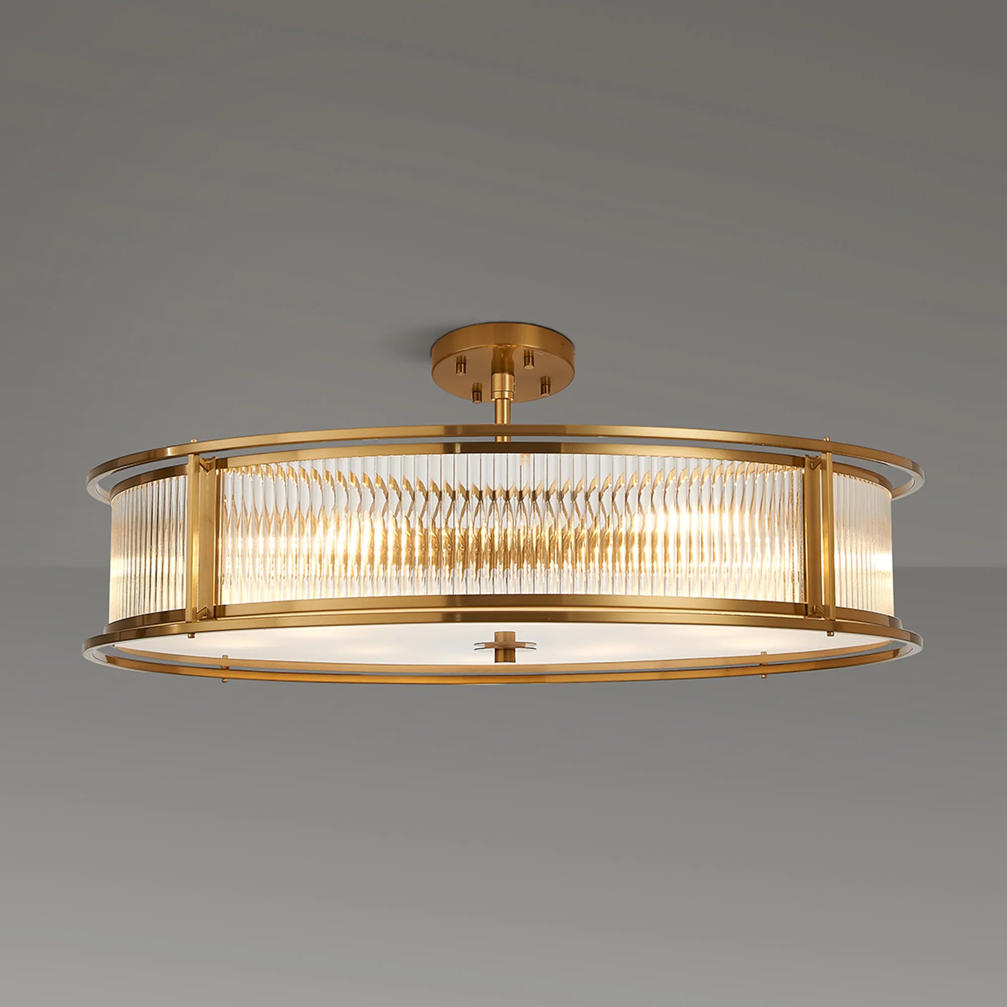 Luxe presents a captivating collection of lantern-style lighting, featuring elegant round and generously sized oval pendants-each effortlessly convertible to semi-flush or flush mount. Available in four exquisite finishes, you can easily find the perfect hue to complement your décor. The ribbed glass panels add a distinctive texture and subtle visual intrigue, enhancing the character of every fixture. Whether you're seeking a modern vibe or a timeless classic look, the Luxe collection offers versatile, stylish lighting options designed to elevate any interior. Complete the look with complementing wall, table or floor lamp.