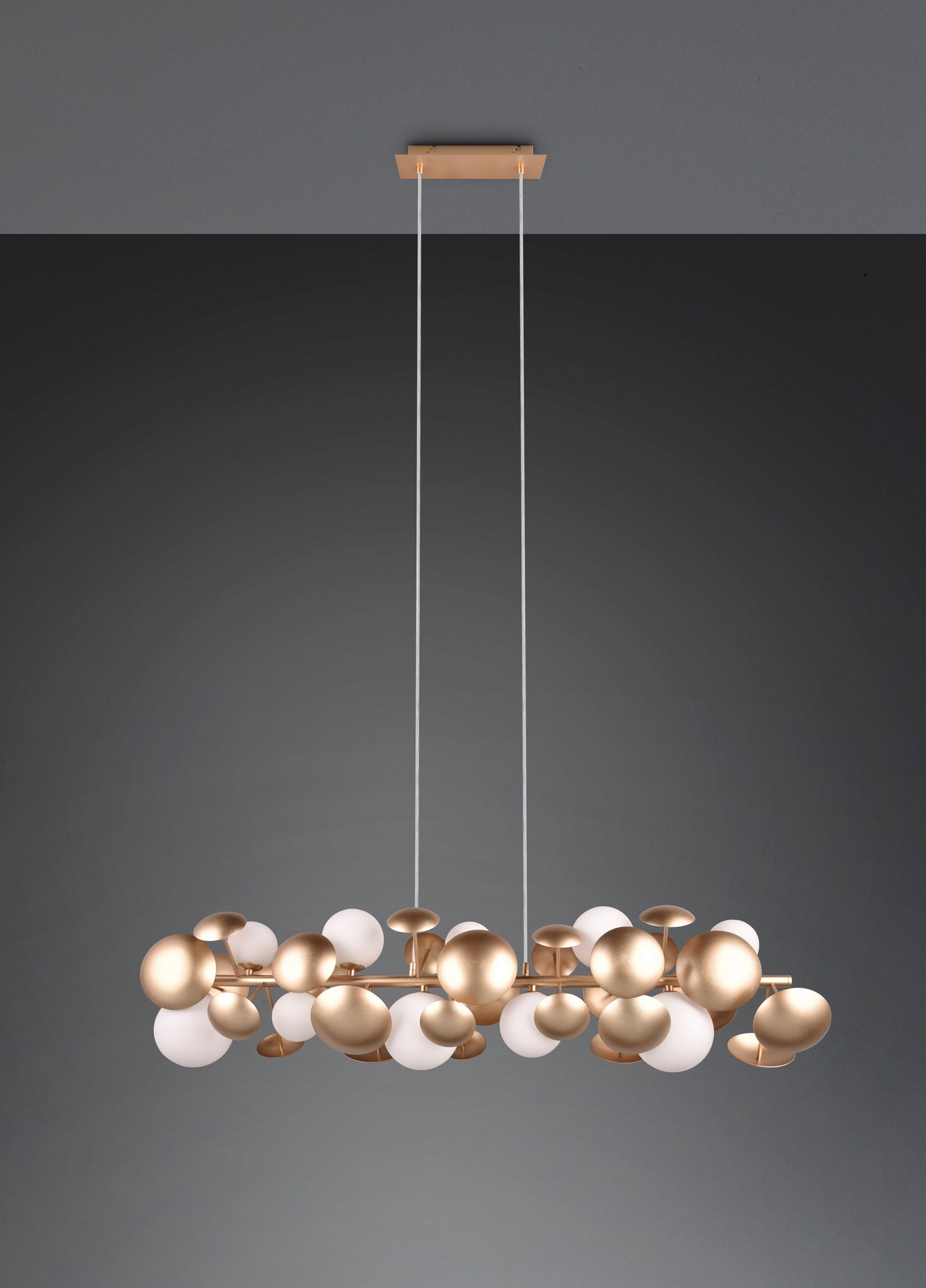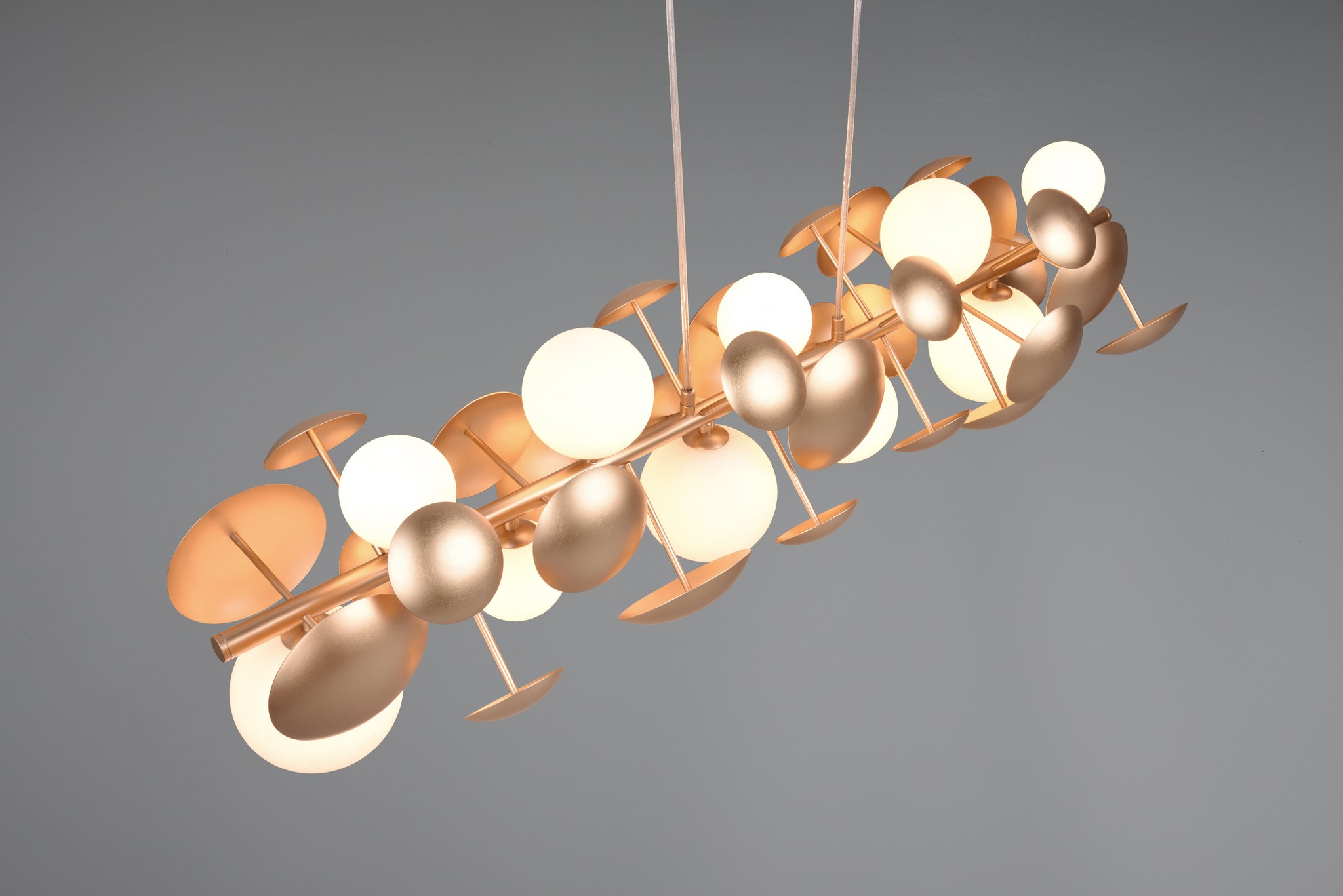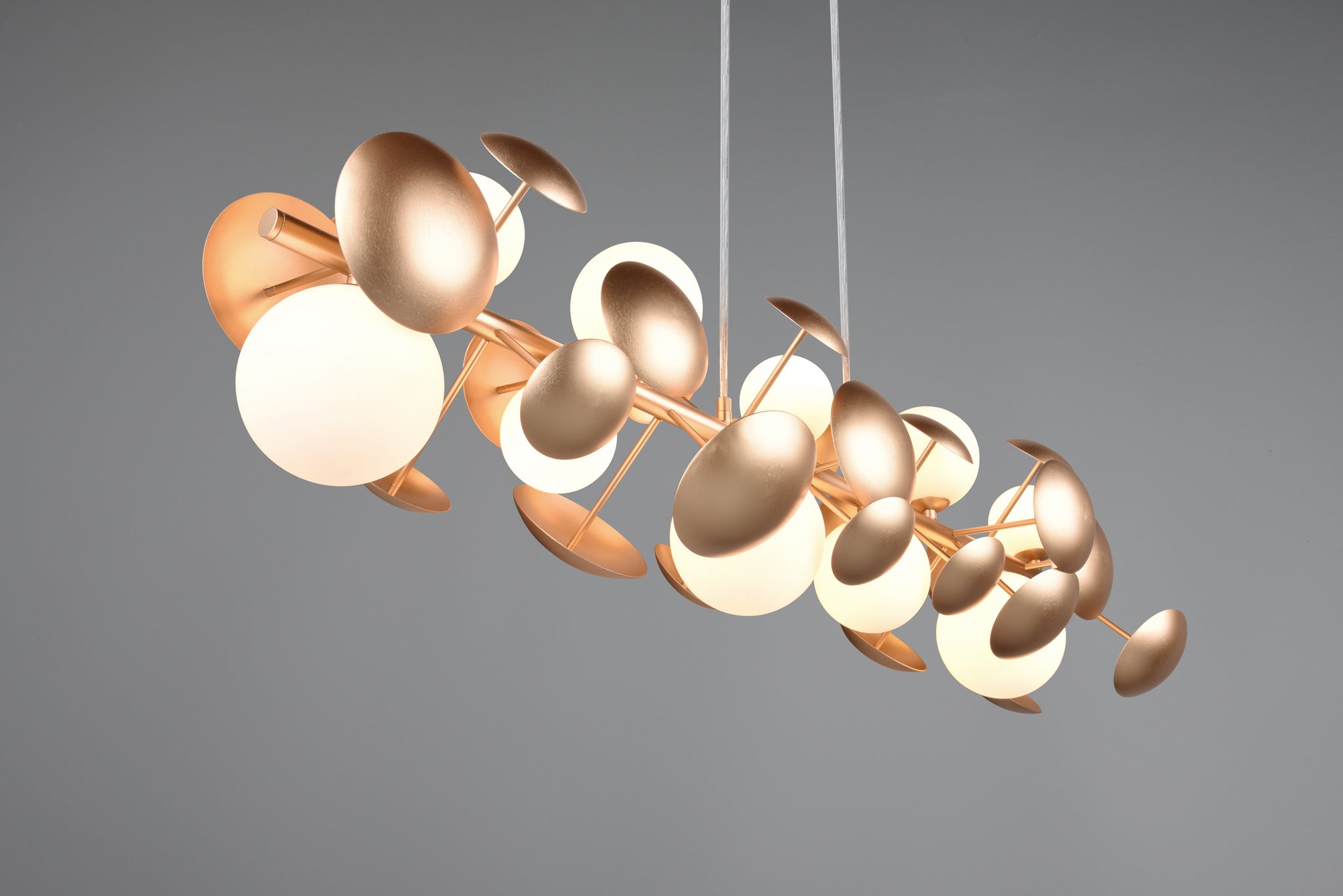 The lights in this range create remarkable accents with a wow effect in your living area. The pendant light unfolds its extraordinary effect particularly impressively above a dining table and plays with light and shadow thanks to its unmistakable design. The unique design of the light is emphasised by the material combination of white glass and gold-coloured metal. The use of LED light sources is recommended for energy-saving lighting. These are an ideal alternative to conventional halogen light sources and offer high light quality and energy savings of up to 80%. With LED light sources, you also benefit from a long service life and low heat generation while protecting the environment.