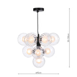 During installation, you can customize the height of the pendant light to suit your preference, ensuring a seamless integration into your decor. Illuminating your space with grace, this pendant accommodates ten G9 bulbs (bulbs not included). To achieve both efficient illumination and aesthetic appeal, we recommend selecting LED bulbs. Elevate your living environment with this 10 Light Pendant Satin Black & Duplex Glass, a perfect harmony of contemporary style and functional brilliance, designed to transform your interior with a touch of modern elegance.
