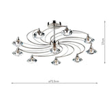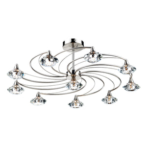 10 Light Semi Flush fitting in satin chrome with faceted crystal glass shades.