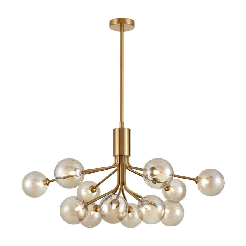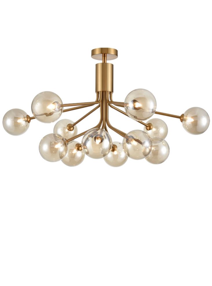 12 Light Ceiling Pendant in Antique Gold with Amber Glass (0194COSFL247012377)