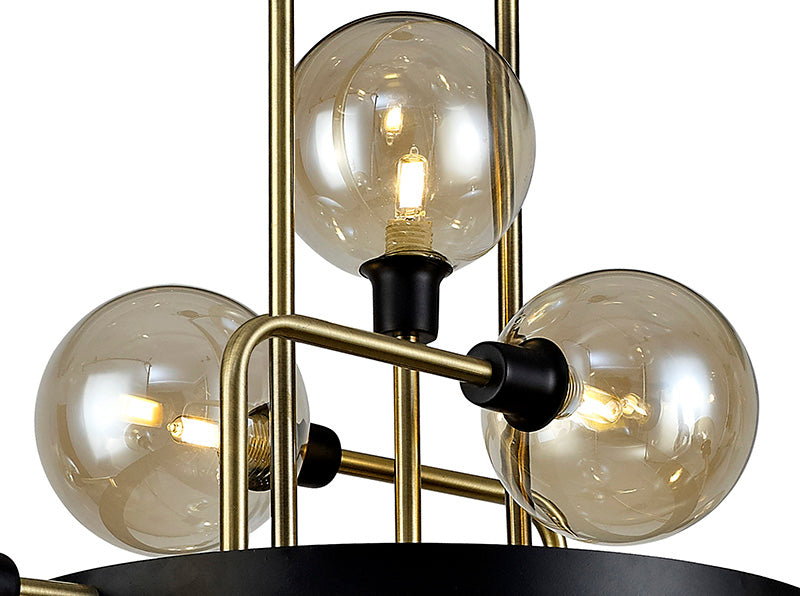 12 Light Fixed Ceiling Pendant - Matt Black/Antique Brass/Cognac Glass (1230FAI27A)