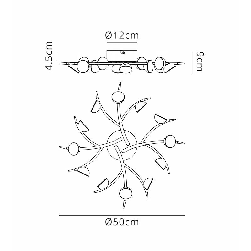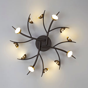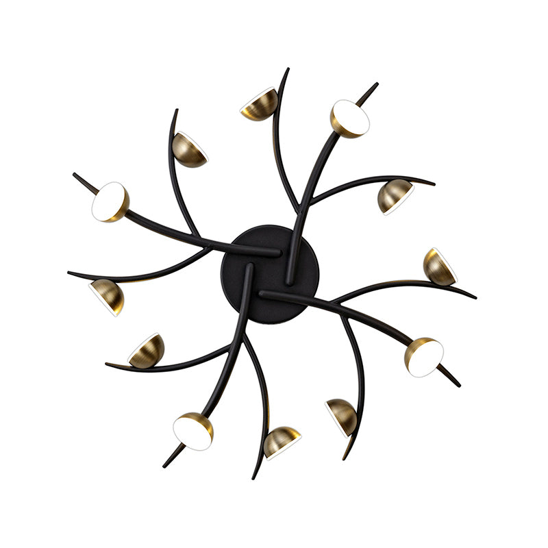 The harmoniously placed, round LED heads are distributed along the sleek fluidic lines to create an art nouveau concept bringing the essence of nature into your home. High quality LED technology partnered with the form of the fixtures and black/antique brass finish provides an idyllic balance. From flush ceiling lights, to a linear pendant and wall lights, this range offers a comprehensive family of lighting to suit your room setting.