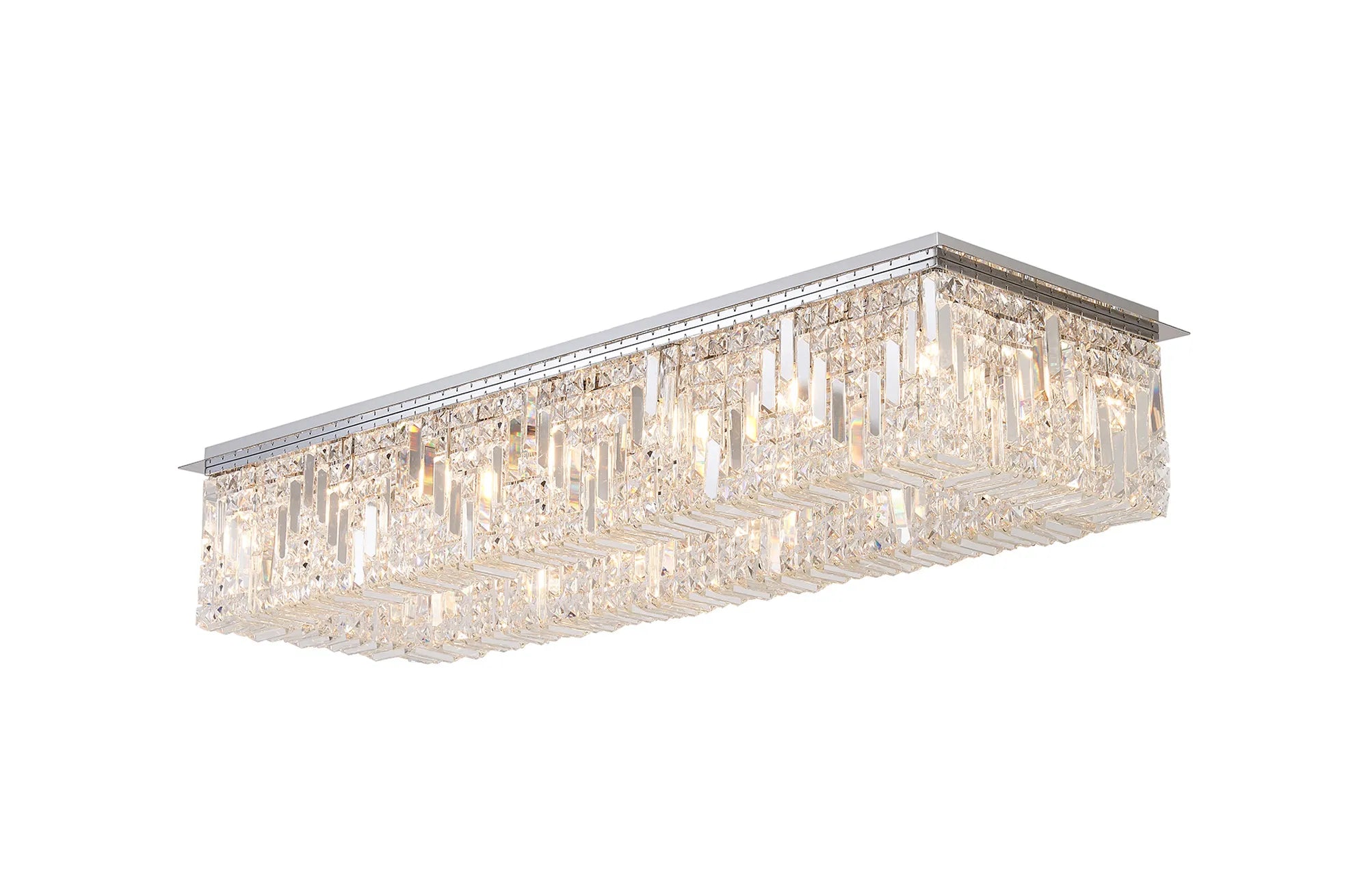 125x42cm Rectangular Flush Chandelier, 16 Light E14, Polished Chrome/Crystal (1230HAL41CH)