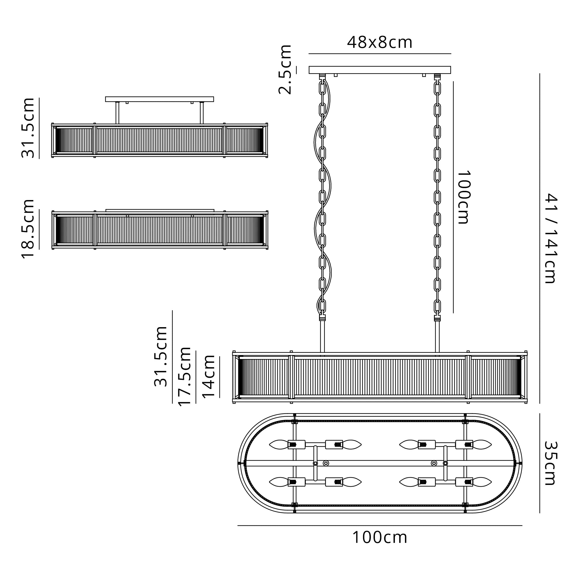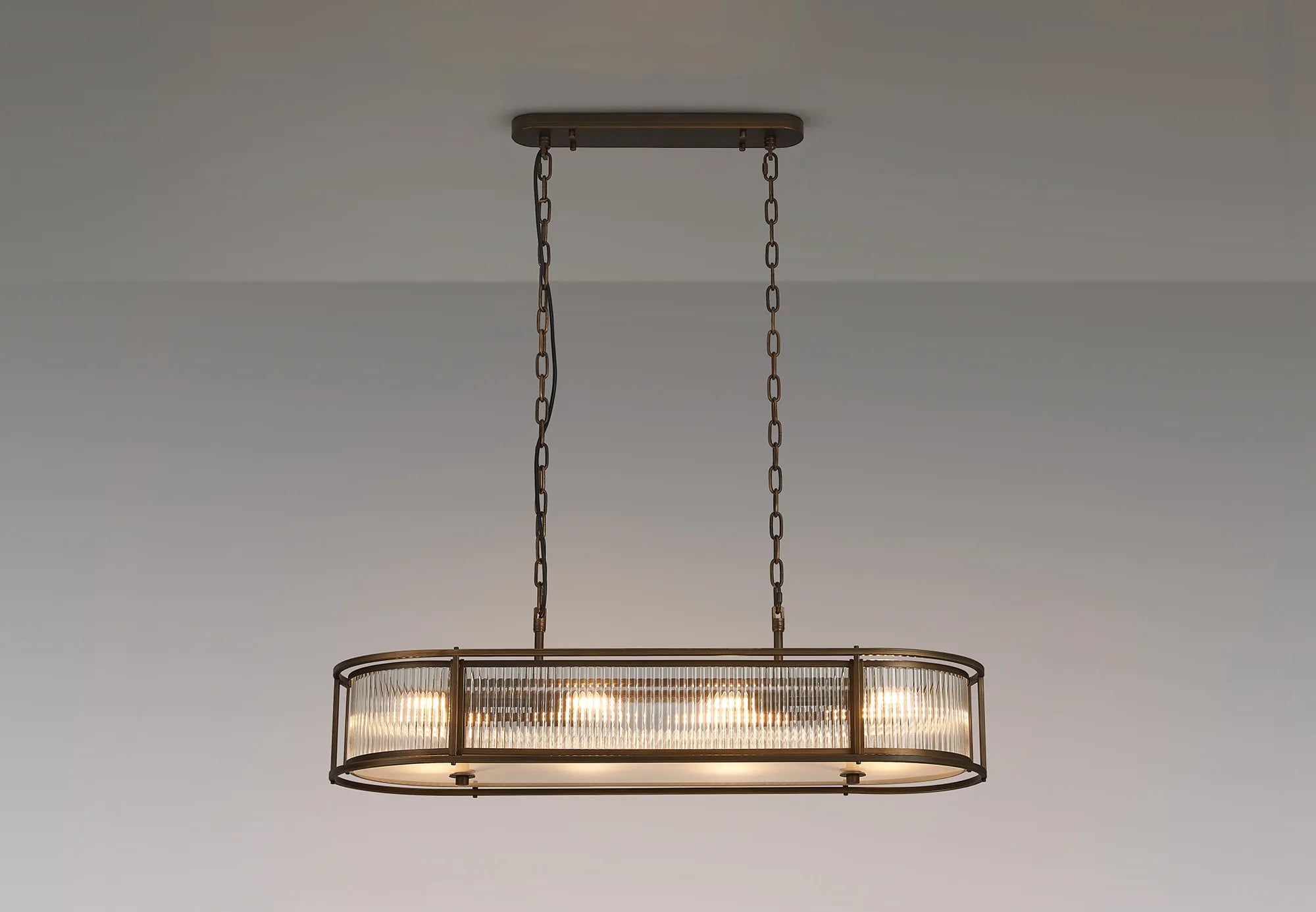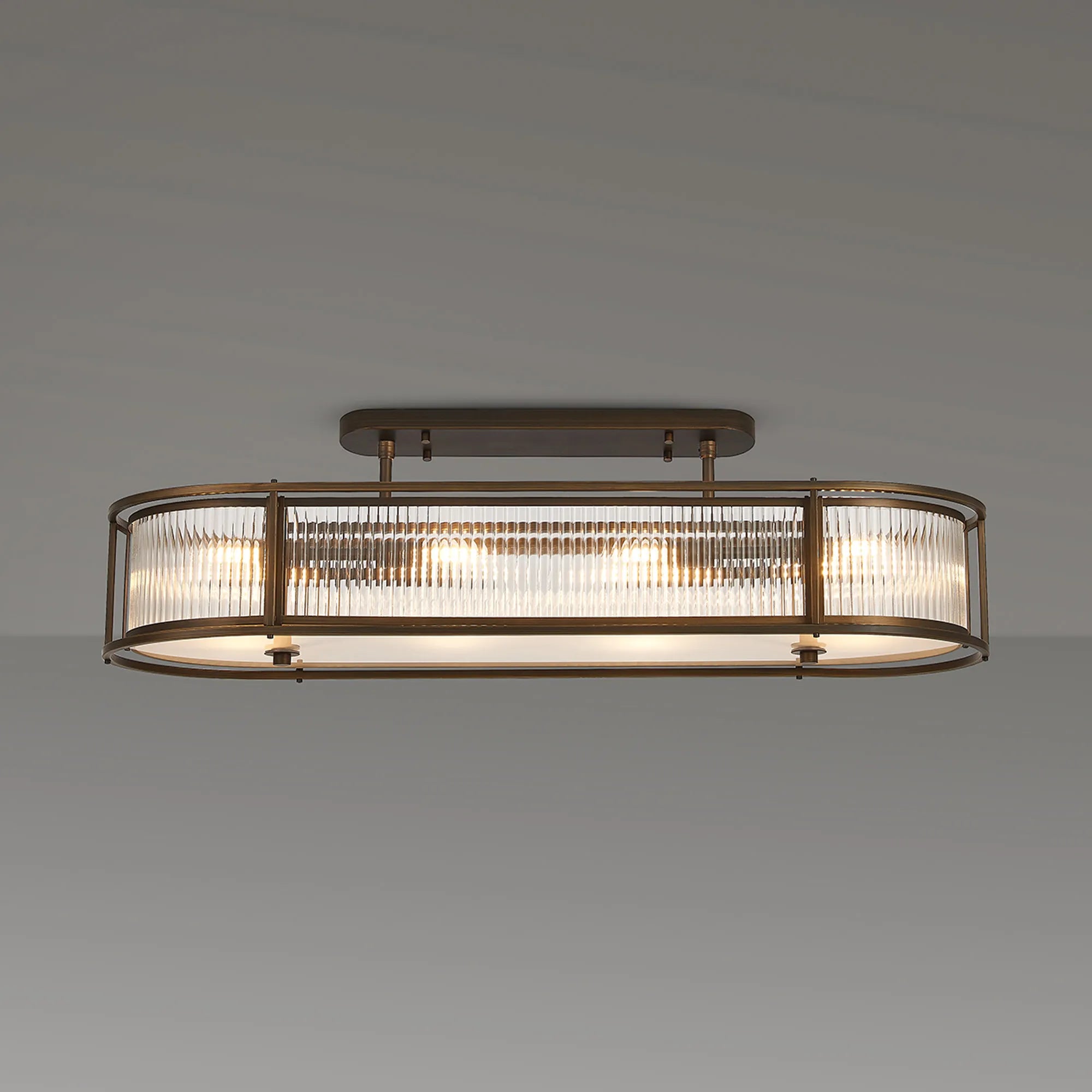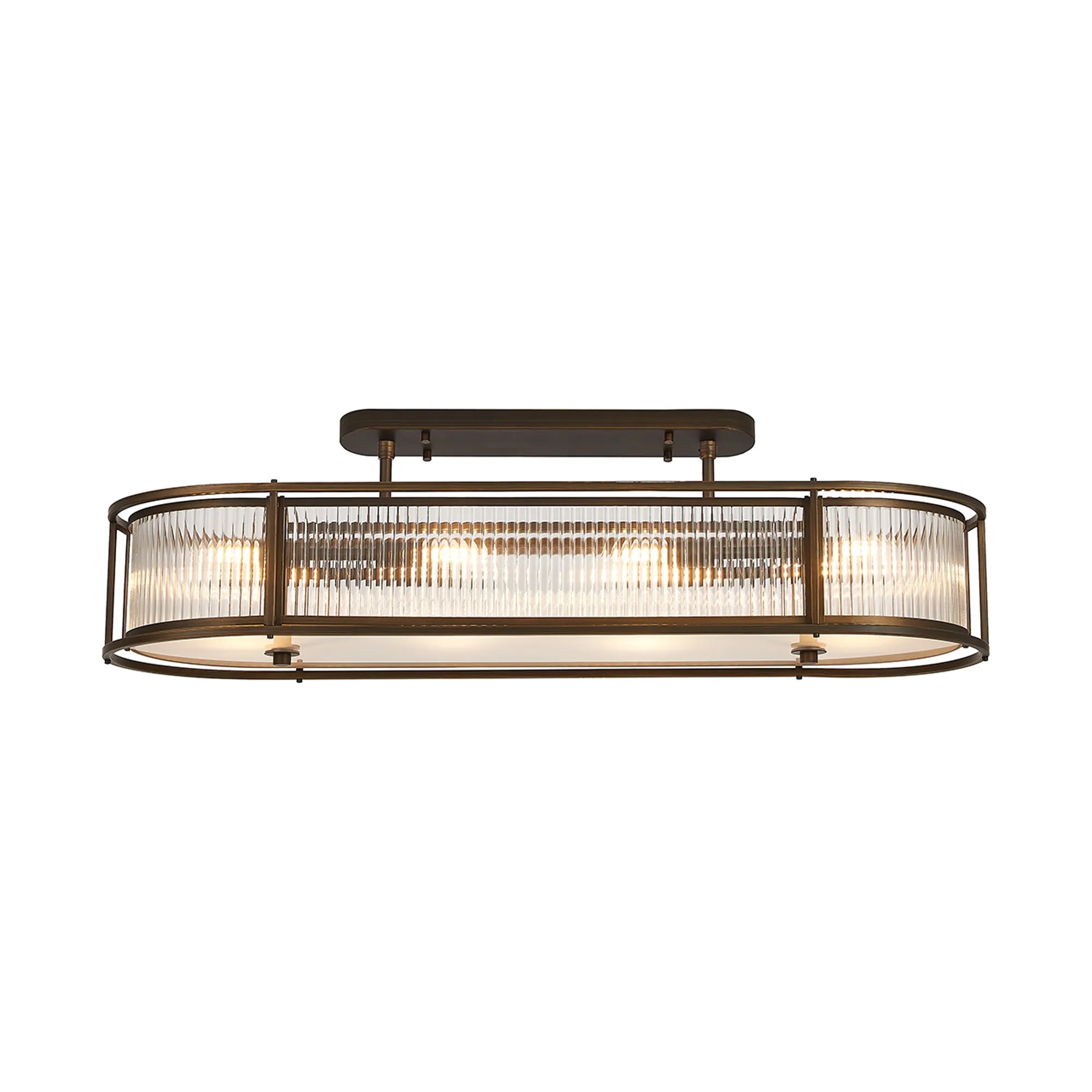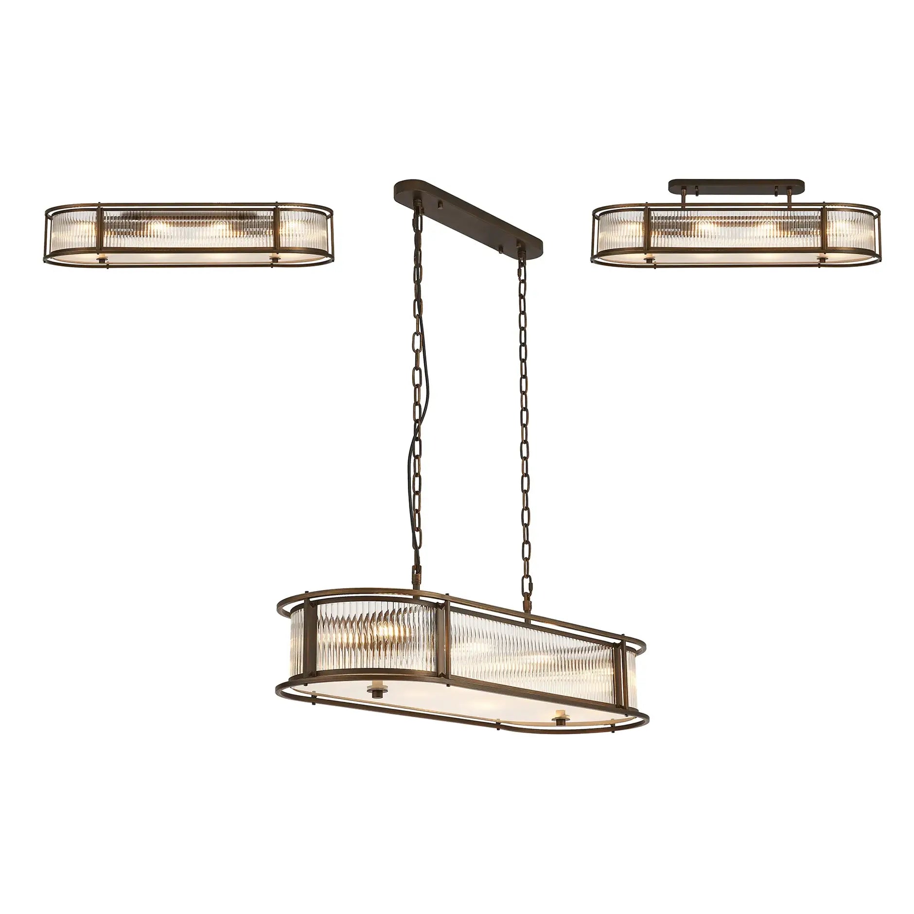 1m x 35cm Oval Flush/Semi Ceiling/Pendant Convertible, E14, Bronze/Clear Glass - Other Finishes available (1230LUX87C)