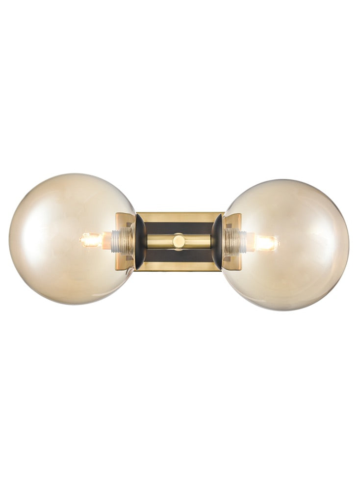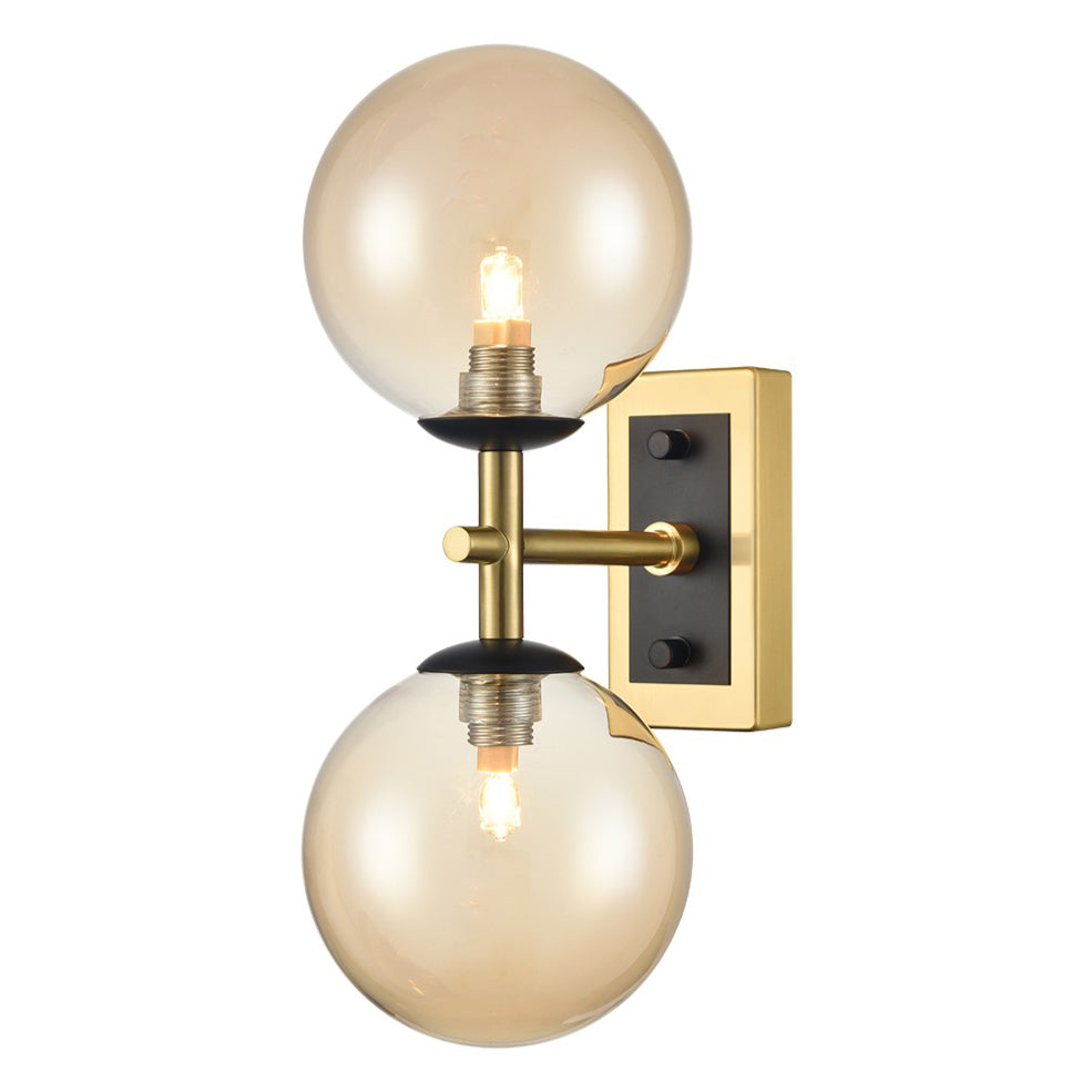2 Light Bathroom Wall Bracket in Matt Black and Aged Brass - 120mm Amber Glass IP44 (0194STEWB407377)