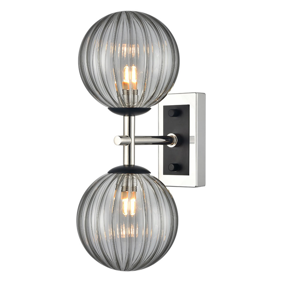 2 Light Bathroom Wall Bracket in Matt Black and Aged Brass - 120mm Clear Glass IP44 (0194STEWB407382)
