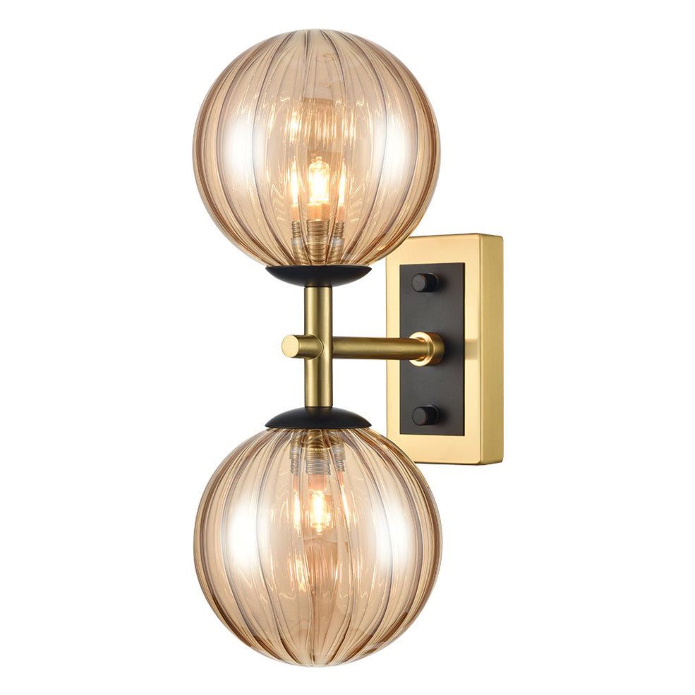 2 Light Bathroom Wall Bracket in Matt Black and Aged Brass - 120mm Glass IP44 (0194STEWB407384)