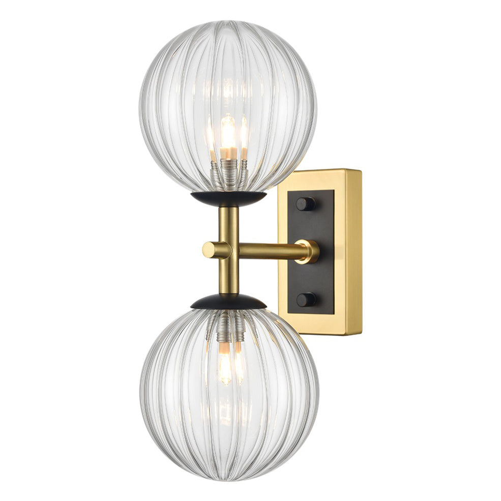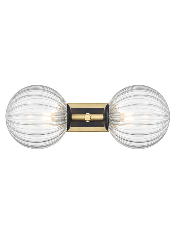2 Light Bathroom Wall Bracket in Matt Black and Polished Nickel - 120mm Clear Glass IP44 (0194STEWB406382)