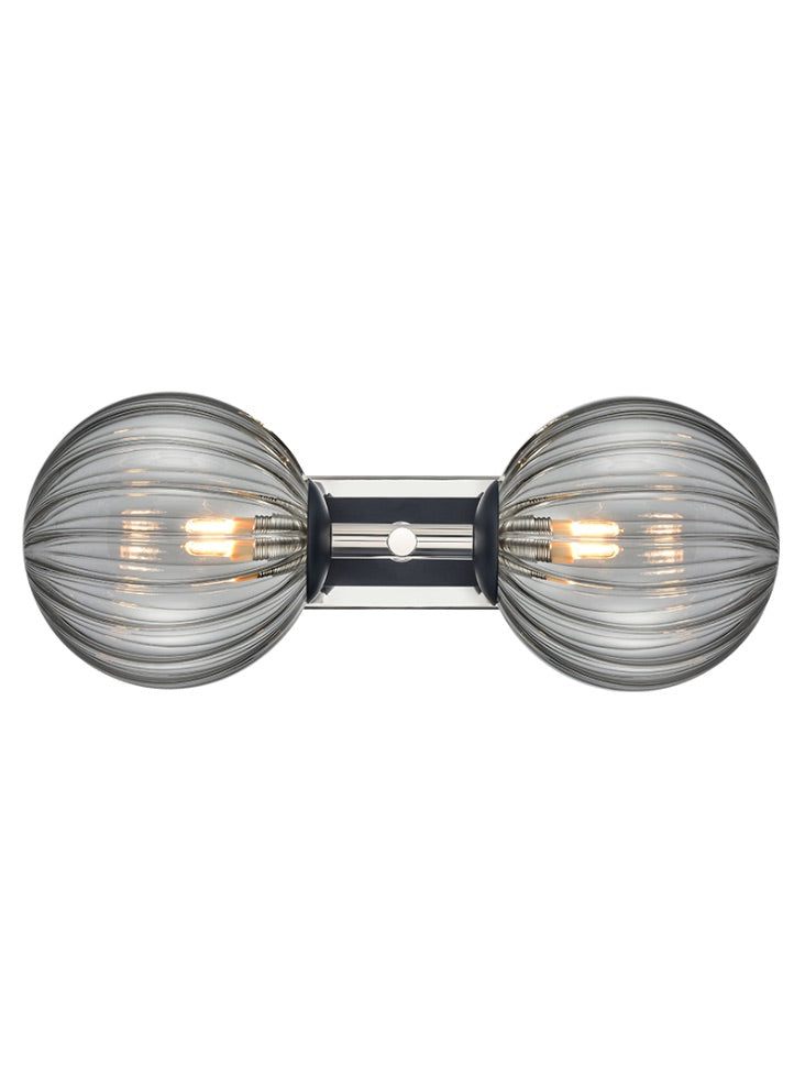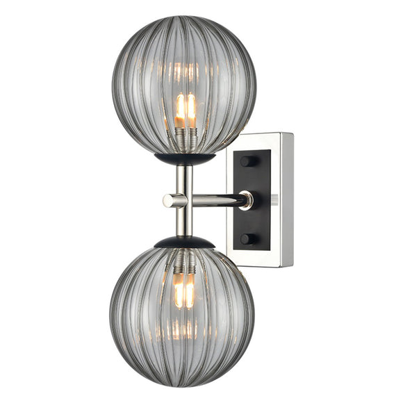 2 Light Bathroom Wall Bracket in Matt Black and Polished Nickel - 120mm Smoked Glass IP44 (0194STEWB406383)