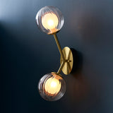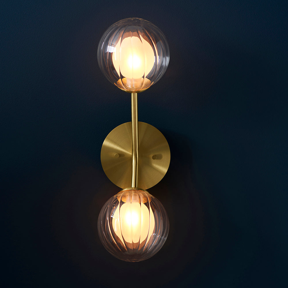 2 Light Satin Brass Wall Light with Clear Ribbed/Frosted Glass (071196691)