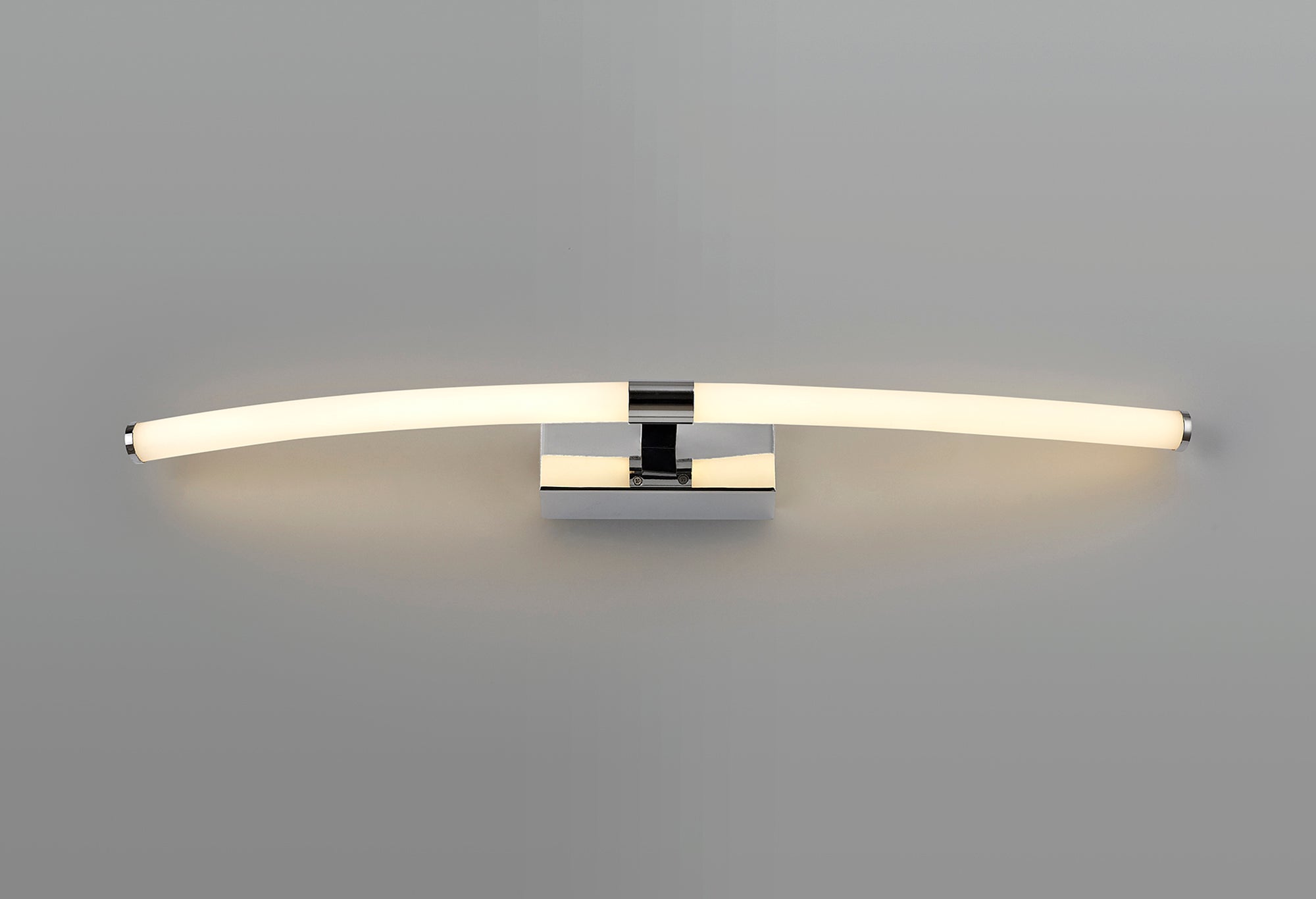 Musical's slim sleek design, available in two sizes, creates an unassuming wall lamp with optimum illumination. The high powered integral 3000K LEDs combined with the IP44 rating and polished chrome/opal white colour finish, make it an ideal over mirror bathroom light whilst the curved shape also enables the fixture to be used as a modern picture light.