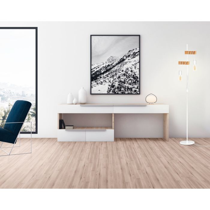 2 Light Vintage Floor Light in Steel, White & Wood, Brown (0794TOW44083)