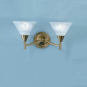 In Satin Brass finish with alabaster effect glasses and a pull switch