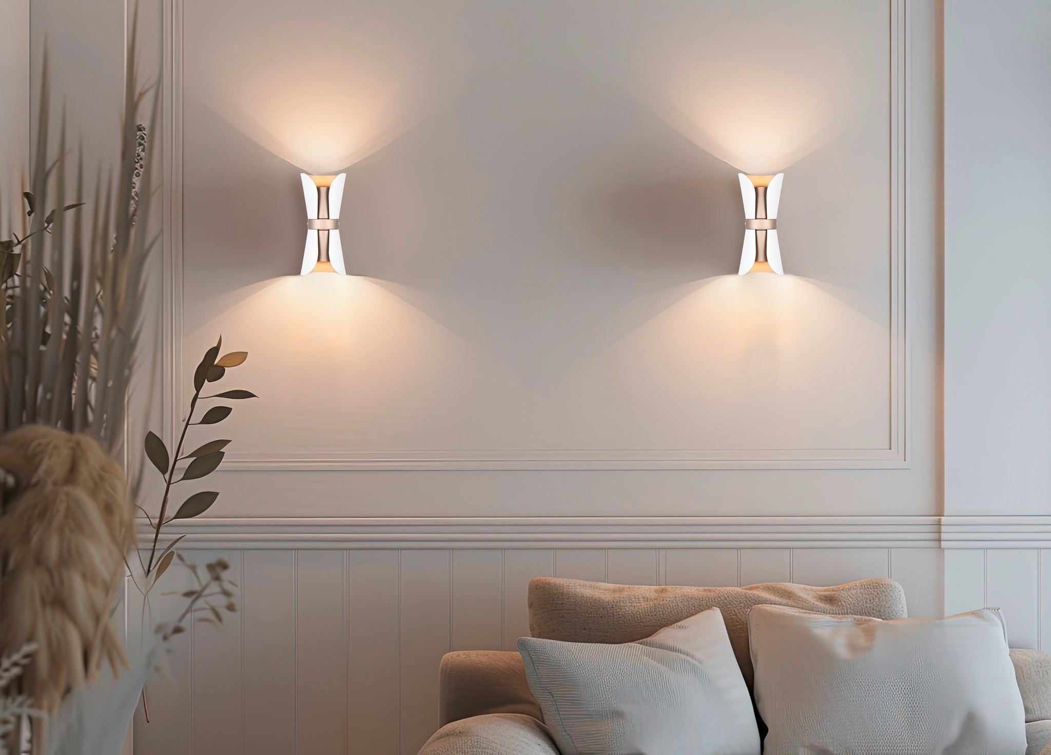 This wall light impresses not only with its practical functionality, but also with its attractive design. Its modern appearance makes it a real eye-catcher in any room. Whether in the living room, bedroom or hallway - the light blends seamlessly into any environment and creates a special atmosphere with its up-and-down lighting. The combination of matt white and coffee gives your interior a harmonious look, while the high-quality metal ensures durability and timeless elegance. The use of LED light sources is recommended for energy-saving lighting. These are an ideal alternative to conventional halogen light sources and offer high light quality and energy savings of up to 80%. With LED light sources, you also benefit from a long service life and low heat generation while protecting the environment.