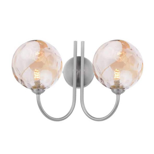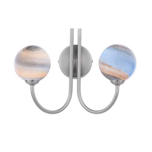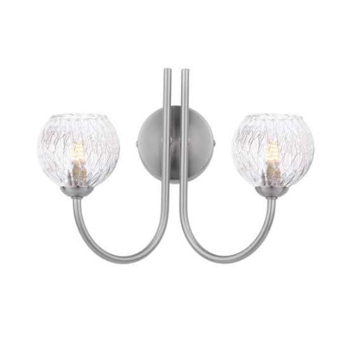 The 2 Light Wall Light Satin Nickel is a beautiful wall light designed to be used in rooms throughout your home (not suitable for bathrooms). The wall light features a contemporary satin nickel frame and pull cord switch. The glass shade is where the magic really happens, choose from over 20 styles, to create a truly unique light.