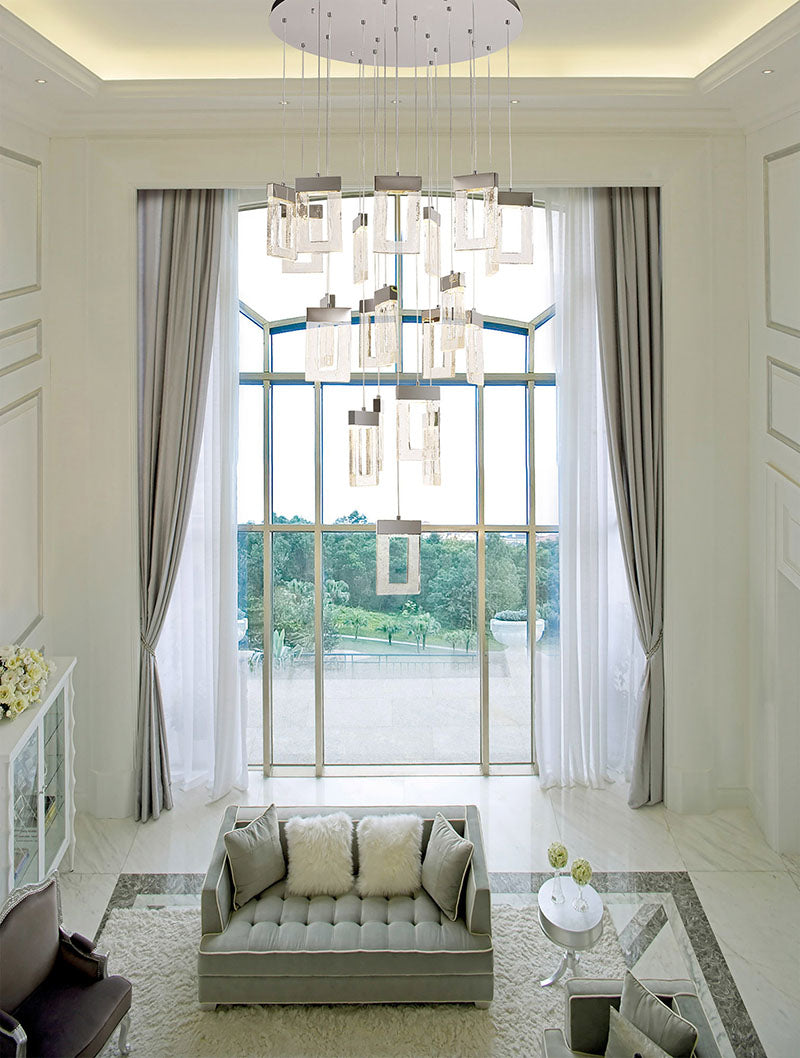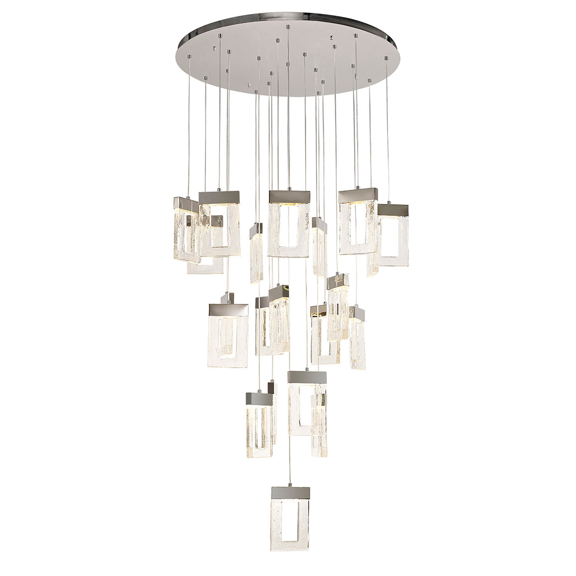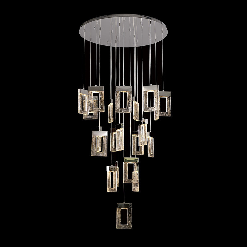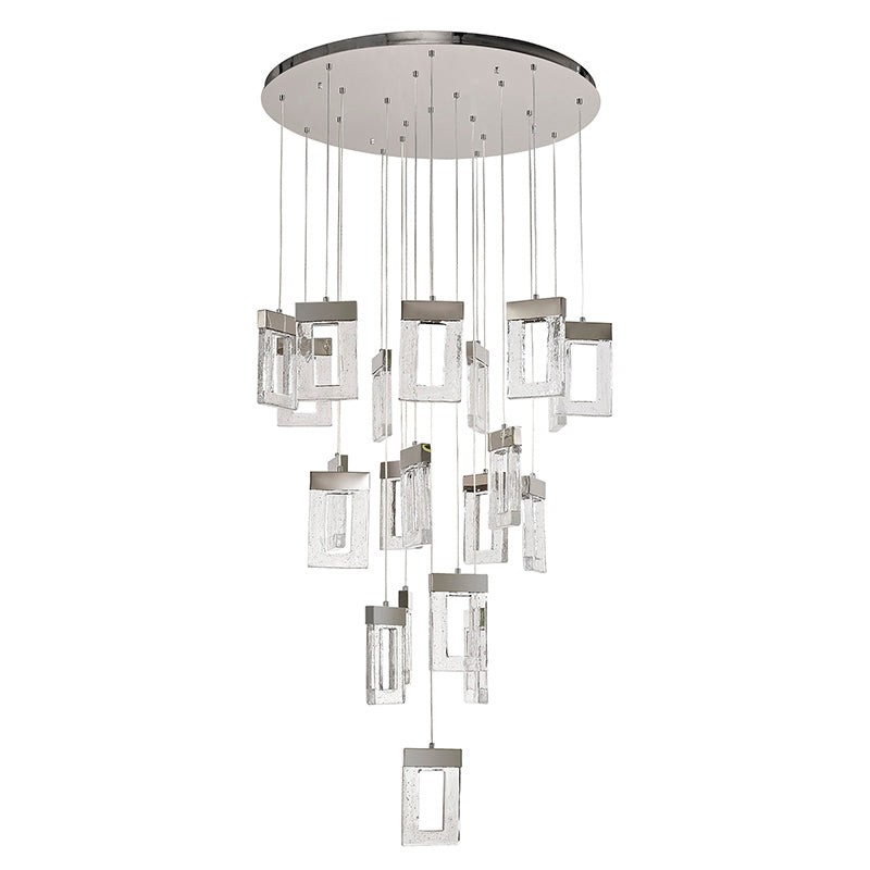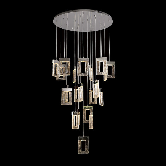 21 Light LED Pendant, Polished Chrome, Rectangular Cut-out Glass (1230FRO6A)