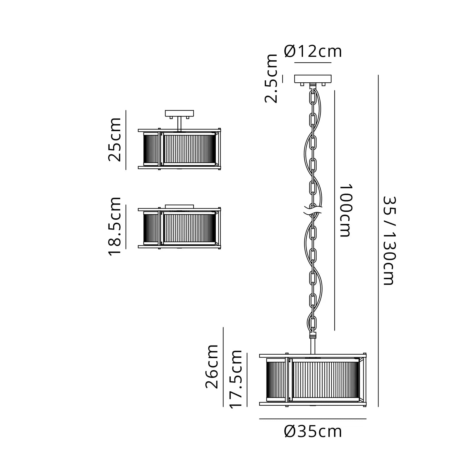 Luxe presents a captivating collection of lantern-style lighting, featuring elegant round and generously sized oval pendants-each effortlessly convertible to semi-flush or flush mount. Available in four exquisite finishes, you can easily find the perfect hue to complement your décor. The ribbed glass panels add a distinctive texture and subtle visual intrigue, enhancing the character of every fixture. Whether you're seeking a modern vibe or a timeless classic look, the Luxe collection offers versatile, stylish lighting options designed to elevate any interior. Complete the look with complementing wall, table or floor lamp.