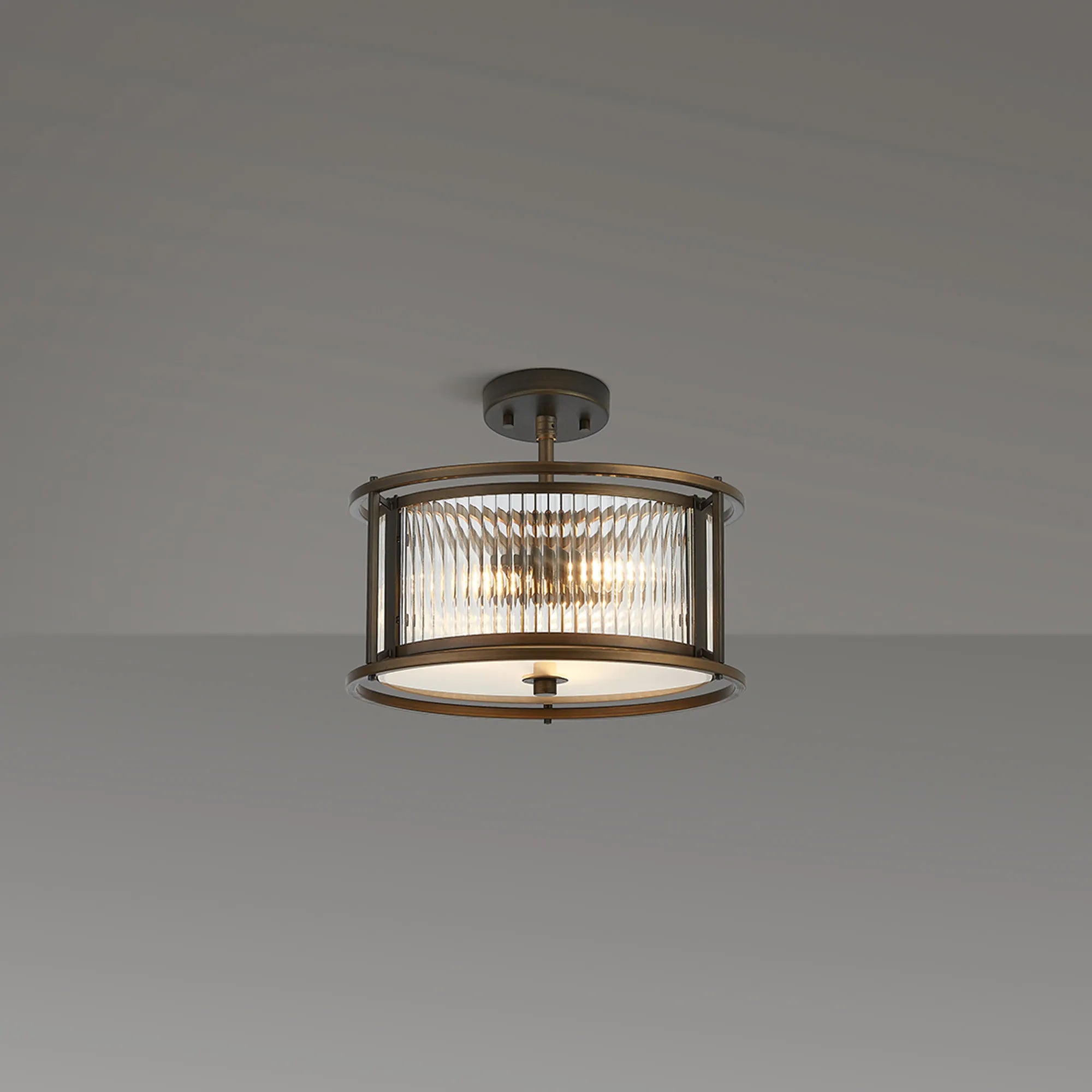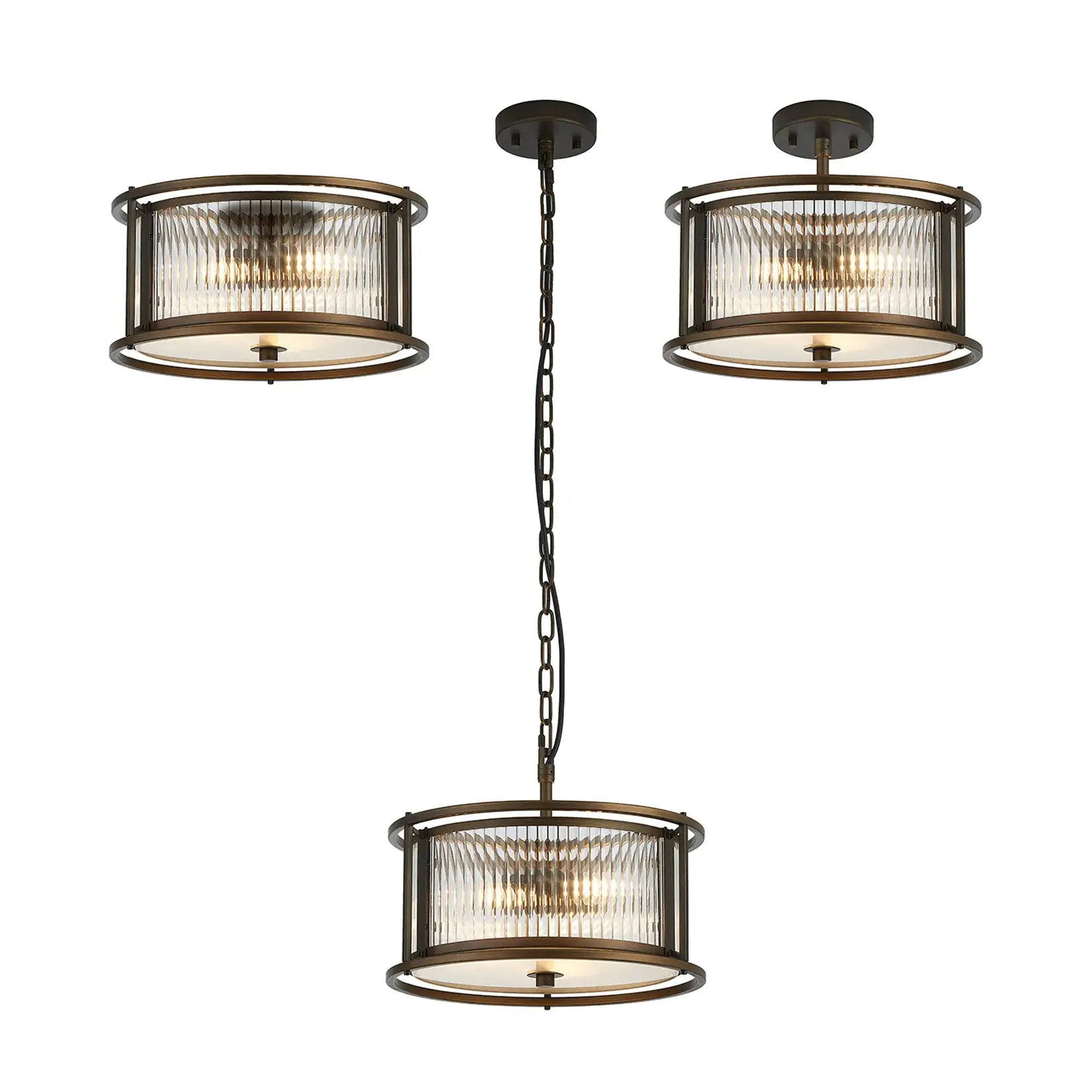 3 Light 35cm Round Flush/Semi Ceiling/Pendant Convertible, E14, Bronze/Clear Glass - Other Finishes available (1230LUX86C)